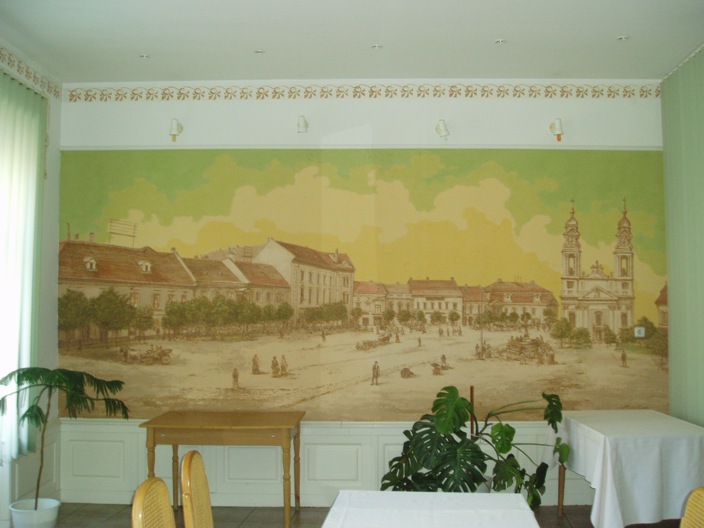 Nyilvános 1212 | 1954 | Pápa, Fő utca 15. Griff Szálló - a régi Pápa látképe | A Fő tér és a Fő utca sarkán áll a Griff Szálló copf stílusú, 1780–1790 között emelt, 1870 körül némileg átalakított épületegyüttese. Nevét az Esterházy család címerállatáról kapta. A Fő utca felőli oldalt Kapuszínnek is nevezik, ugyanis az emelet alatti részen nyílik Pápa sétálóutcájának, a Kossuth utcának a bejárata. A ház másik része a szálloda. A XIX. század folyamán a Griff volt a pápai társas élet központja. Itt alakult meg 1834-ben, Széchenyi István kezdeményezése nyomán — az országban az elsők között — a pápai kaszinó. E jeles eseménynek 1999-ben felavatott vörös márványtábla állít emléket. A Griff ma is meglévő patinás tánctermében — az ún. Tükörteremben — egykor színielőadások és megyebálok zajlottak. Testőrtiszt korában táncolt itt leendő feleségével, Szegedy Rózával Kisfaludy Sándor. Jónéhány évtizeddel később Mikszáth Kálmán volt jelen egy itt tartott táncmulatságon, s ez az élmény inspirálta A Noszty fiú esete Tóth Marival című regényének báli jelenetét. A XIX. század legelejétől 1881-ig, a pápai kőszínház (lásd: Pápa, Március 15. tér) megépítéséig a városba érkező különböző színtársulatok — kevés kivétellel — a Griff nagytermében tartották előadásaikat. A magyar színjátszás nagy egyéniségei közül játszott itt Déryné és Kántorné is. 1842-ben a színielőadások rendszeres látogatója volt két pápai diák, akik maguk is színészi–művészi vágyakat melengettek szívükben: Petőfi Sándor és Jókai Mór (akkor még Petrovics Sándor és Jókay Móric). Petőfi már itt tapsolhatott későbbi jóbarátjának, Egressy Gábornak, aki nevezetes szerepeiben lépett fel a társulat vendégeként — többek között Hamletet és Lear királyt játszotta. A társulat vezető színésznője Szatmáryné Farkas Lujza volt, aki elbűvölte a kamasz Petőfit. Petőfi és Jókai tiszteletüket kívánták tenni a művésznőnél, akit azonban éppen egy társnőjével civakodva találtak a Griff folyosóján. Petőfi — kiábrándulva — ekkor írta meg Szín és való című költeményét, amellyel aztán két arany pályadíjat nyert. A teremben sok jeles hangversenyt is rendeztek. 1937-ben fellépett itt Bartók Béla is fiatal kamarapartnerével, Gertler Endre hegedűművésszel. E nevezetes koncert 60. évfordulóján, 1997-ben emlékhangversenyt rendeztek ugyanitt, melyen részt vett az akkor már 90 esztendős Gertler Endre is. Mindkét eseményről vörös márványtábla emlékezik meg a Tükörteremben. A fénykép 2007 áprilisában készült. Felh. irod.: Pápa. Szerk. Sz. Farkas Aranka. Bp., Magyar Képek, 2000. Németh Adél – Szabó Lajos: Pápa. Bp. Panoráma, 1989 Nádasdy Lajos: A pápai kőszínház története 1817–1931. Veszprém, 1981, Veszprém megyei Tanács www.kincsestar.radio.hu/harangok "A kényes úrfi s a rongyos baka". Tanulmányok két halhatatlan pápai diákról. Pápa, Pápai Református Gyűjtemények, 2001 |