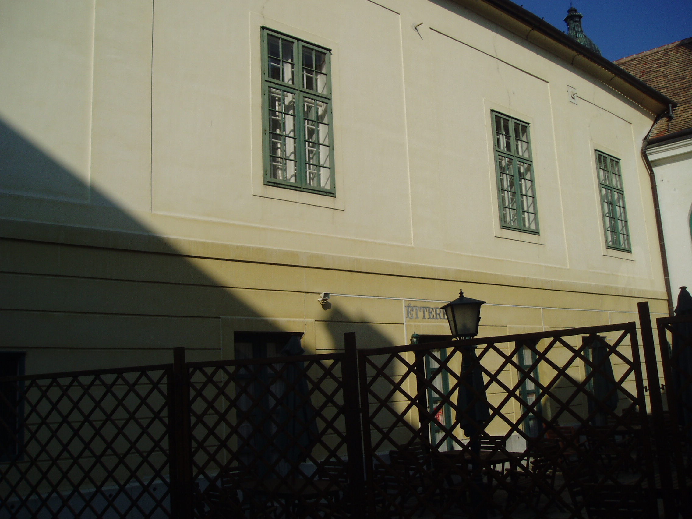 Nyilvános 1199 | 1961 | Pápa, Fő utca 15. Griff Szálló - A Tükörterem belső udvarra néző ablakai | A Fő tér és a Fő utca sarkán áll a Griff Szálló copf stílusú, 1780–1790 között emelt, 1870 körül némileg átalakított épületegyüttese. Nevét az Esterházy család címerállatáról kapta. A Fő utca felőli oldalt Kapuszínnek is nevezik, ugyanis az emelet alatti részen nyílik Pápa sétálóutcájának, a Kossuth utcának a bejárata. A ház másik része a szálloda. A XIX. század folyamán a Griff volt a pápai társas élet központja. Itt alakult meg 1834-ben, Széchenyi István kezdeményezése nyomán — az országban az elsők között — a pápai kaszinó. E jeles eseménynek 1999-ben felavatott vörös márványtábla állít emléket. A Griff ma is meglévő patinás tánctermében — az ún. Tükörteremben — egykor színielőadások és megyebálok zajlottak. Testőrtiszt korában táncolt itt leendő feleségével, Szegedy Rózával Kisfaludy Sándor. Jónéhány évtizeddel később Mikszáth Kálmán volt jelen egy itt tartott táncmulatságon, s ez az élmény inspirálta A Noszty fiú esete Tóth Marival című regényének báli jelenetét. A XIX. század legelejétől 1881-ig, a pápai kőszínház (lásd: Pápa, Március 15. tér) megépítéséig a városba érkező különböző színtársulatok — kevés kivétellel — a Griff nagytermében tartották előadásaikat. A magyar színjátszás nagy egyéniségei közül játszott itt Déryné és Kántorné is. 1842-ben a színielőadások rendszeres látogatója volt két pápai diák, akik maguk is színészi–művészi vágyakat melengettek szívükben: Petőfi Sándor és Jókai Mór (akkor még Petrovics Sándor és Jókay Móric). Petőfi már itt tapsolhatott későbbi jóbarátjának, Egressy Gábornak, aki nevezetes szerepeiben lépett fel a társulat vendégeként — többek között Hamletet és Lear királyt játszotta. A társulat vezető színésznője Szatmáryné Farkas Lujza volt, aki elbűvölte a kamasz Petőfit. Petőfi és Jókai tiszteletüket kívánták tenni a művésznőnél, akit azonban éppen egy társnőjével civakodva találtak a Griff folyosóján. Petőfi — kiábrándulva — ekkor írta meg Szín és való című költeményét, amellyel aztán két arany pályadíjat nyert. A teremben sok jeles hangversenyt is rendeztek. 1937-ben fellépett itt Bartók Béla is fiatal kamarapartnerével, Gertler Endre hegedűművésszel. E nevezetes koncert 60. évfordulóján, 1997-ben emlékhangversenyt rendeztek ugyanitt, melyen részt vett az akkor már 90 esztendős Gertler Endre is. Mindkét eseményről vörös márványtábla emlékezik meg a Tükörteremben. A fénykép 2007 áprilisában készült. Felh. irod.: Pápa. Szerk. Sz. Farkas Aranka. Bp., Magyar Képek, 2000. Németh Adél – Szabó Lajos: Pápa. Bp. Panoráma, 1989 Nádasdy Lajos: A pápai kőszínház története 1817–1931. Veszprém, 1981, Veszprém megyei Tanács www.kincsestar.radio.hu/harangok "A kényes úrfi s a rongyos baka". Tanulmányok két halhatatlan pápai diákról. Pápa, Pápai Református Gyűjtemények, 2001 |