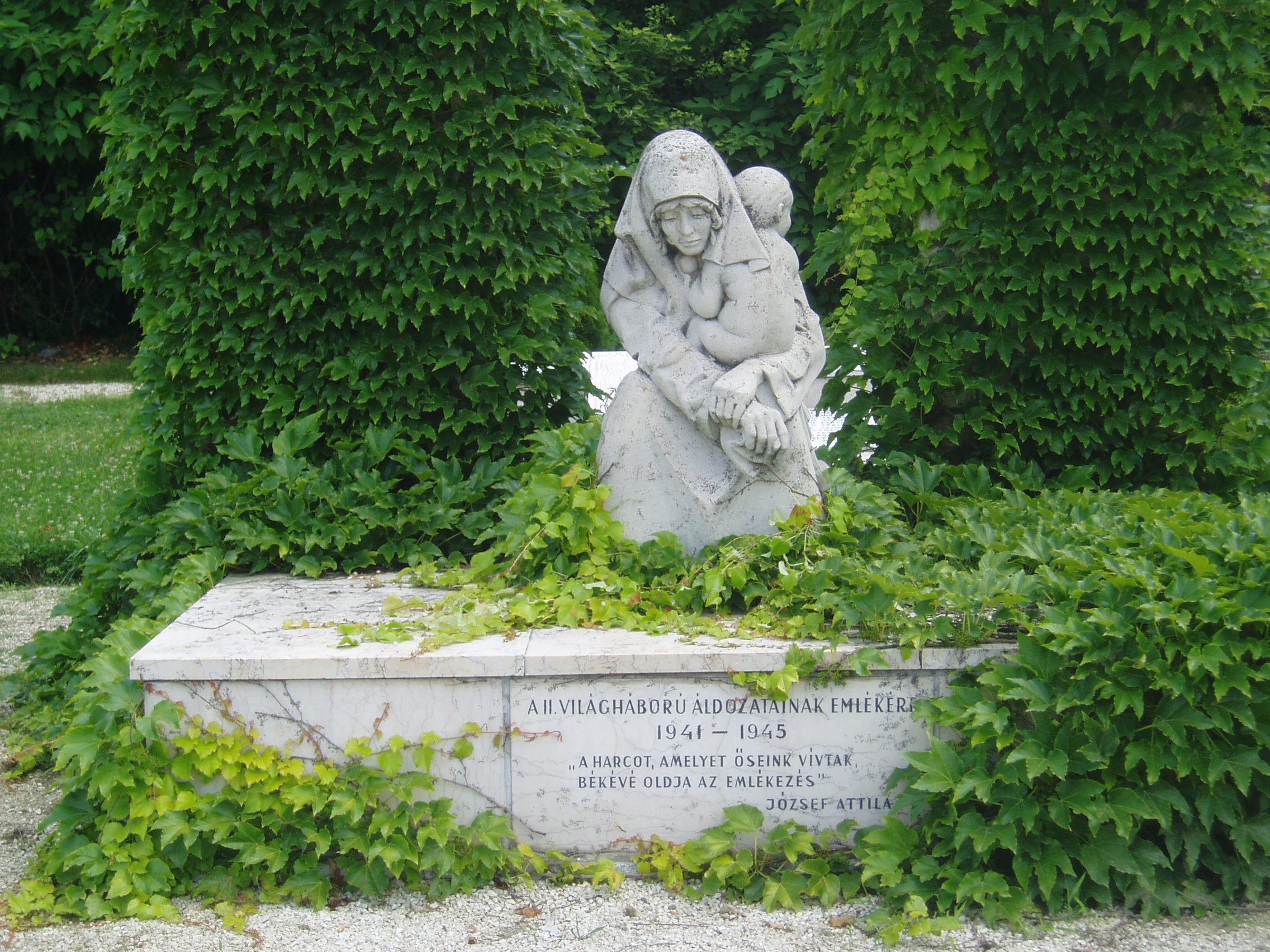 Nyilvános 1178 | 1700 | Sümeg, Kossuth utca 35. után | Az Eitner-ház (lásd: Kossuth u. 35.) északra néző oldalhomlokzata egy kis parkra tekint. A két világháború között itt állt az Országzászló, később pedig a szovjet emlékmű. 1991-ben itt állították fel a második világháború sümegi áldozatainak emlékművét, Marton László szobrászművész alkotását. A fénykép 2007 júniusában készült. Felh. irod.: Koppány Tibor - Kozák Károly: Sümeg útikalauz. Veszprém, Idegenforgalmi Hivatal, 1965 Látnivalók Veszprém megyében. Miskolc, Well-PRess, 2004 Sümegi kalauz. Sümeg, Sümegi Fórum alapítvány, 1993 |