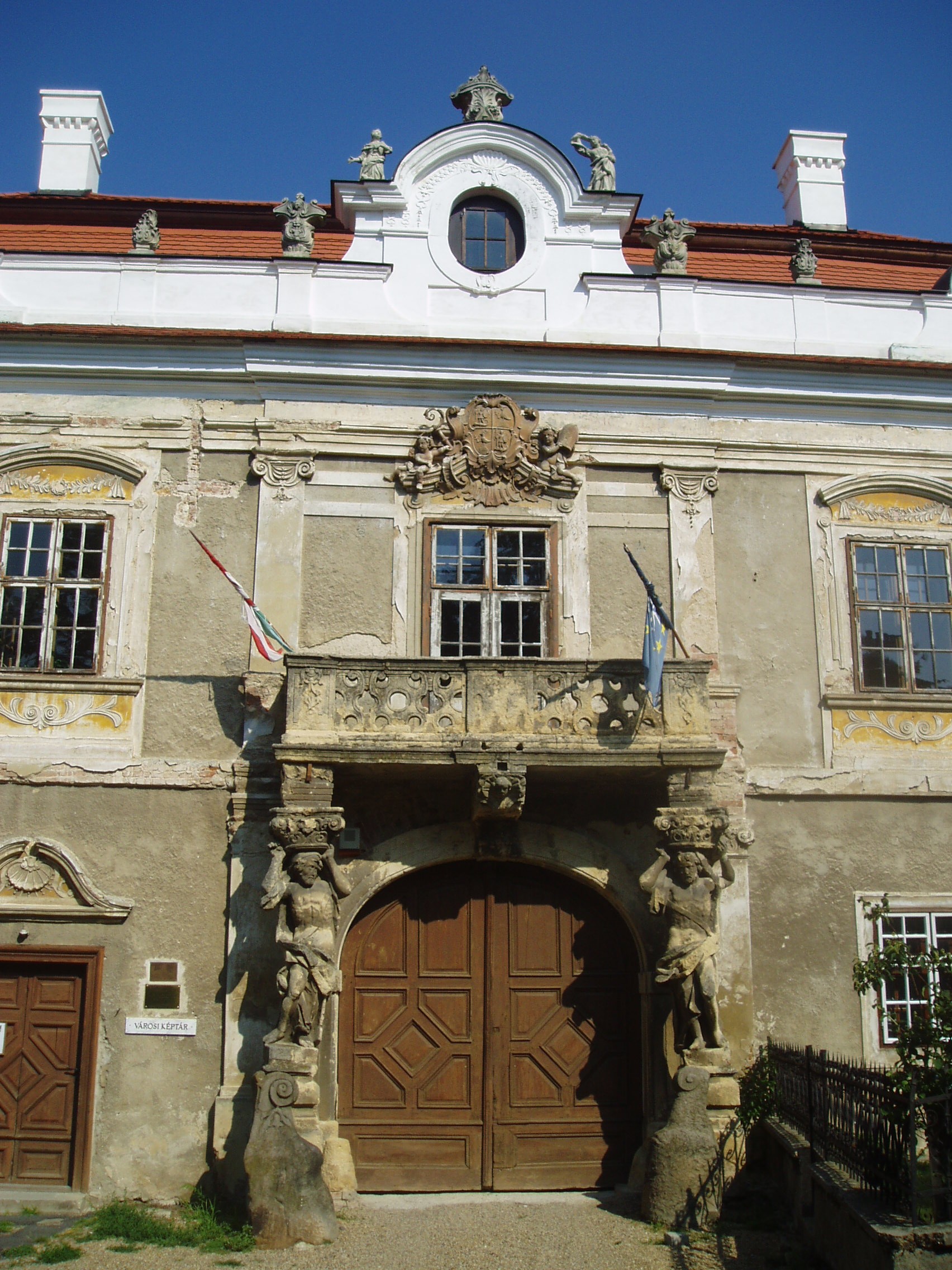 Nyilvános 1213 | 1746 | Sümeg, Szent István tér 10. Püspöki palota | A város egyik legszebb épülete az 1748 és 1755 között emelt püspöki palota. Építtetője Padányi Bíró Márton, aki 1745-ben lett veszprémi püspök, aki élete végéig nagyrészt Sümegről irányította az egyházmgye életét. Sümegen is hunyt el 1762. augusztus 16-án, 67 éves korában. Az épület a domborzati viszonyokat követve egy részében földszintes, nagyobb részében viszont emeletes. Középen a barokk építészet szabályai szerint kiemelt, díszesebb, az íves főkaput tartalmazó épületrész látható. A főkapu felett lévő faragott kőmellvéd erkélyt Atlasz-figurák tartják. A főpárkány alatt helyezték el az építtető püspök gazdagon díszített címerét. Az épület ebédlőjében és kápolnájában a falképek Vogl György, a stukkók Antonio Orsatti 1750-ben készült barokk stílusú alkotásai; a szobák stukkódíszítése és falburkolata szintén barokk stílusú. A palotát 1830 körül klasszicista stílusban átalakították. A fénykép 2007 júniusában készült. Felh. irod.: Koppány Tibor - Kozák Károly: Sümeg útikalauz. Veszprém, Idegenforgalmi Hivatal, 1965 Látnivalók Veszprém megyében. Miskolc, Well-PRess, 2004 Sümegi kalauz. Sümeg, Sümegi Fórum alapítvány, 1993 Hőgyész László: Sümeg évszázadai. Veszprém, 1989 |