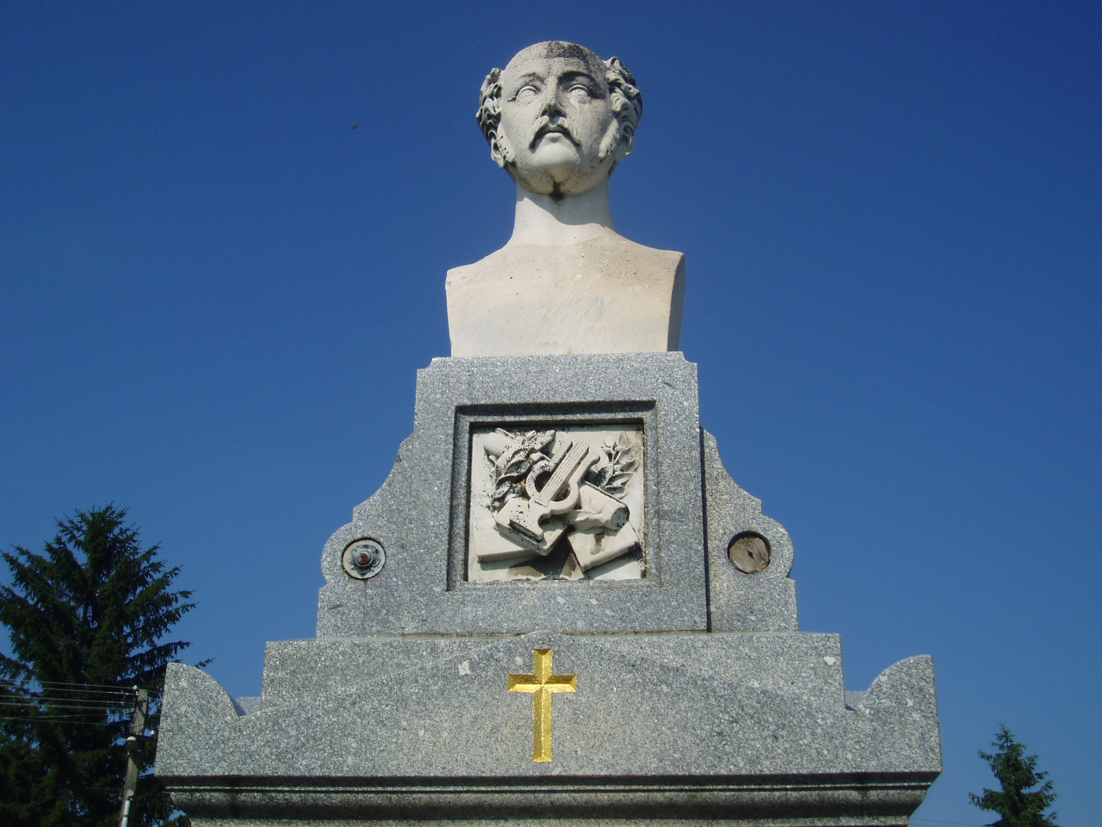 Nyilvános 1254 | 3124 | Sümeg, Temető. Kisfaludy Sándor és Szegedi Róza sírja | Sümeg délkeleti határában, a Tapolcára vezető út mellett emelkedő lankás domboldalon találjuk a város köztemetőjét. Helyét még Bíró Márton püspök jelölte ki; jelentősebb számban a XIX. század eleje óta kezdtek ide temetkezni. A temetődomb tetején áll az 1816-ban épített, későbarokk stílusú temetőkápolna. Körülötte a sümegi élet utolsó két évszázada szinte valamennyi híres személyiségének sírja fellelhető. A temető leglátogatottabb síremléke Kisfaludy Sándor (1772-1844) és felesége, Szegedy Róza (1775-1832) sírja. A korábban elhunyt Szegedy Róza földi maradványait az 1900-as évek elején helyezték át férje sírjába. Akkor már a költő sem eredeti helyén nyugodott, erre a díszsírhelyre 1869-ben hozták át koporsóját. A timpanonos lezárású szürke gránit sírkövet megkoronázó Kisfaludy Sándor-mellszobor Gerenday Antal 1869-ben készített alkotása. A sír háromlépcsős talapzatának középső fokára helyezték Szegedy Róza lépcsőre hulló rózsákkal díszített portrédomborművét, amelyet Istók János készített 1904-ben. A fénykép 2007 júniusában készült. Felh. irod.: Koppány Tibor - Kozák Károly: Sümeg útikalauz. Veszprém, Idegenforgalmi Hivatal, 1965 Sümegi kalauz. Sümeg, Sümegi Fórum Alapítvány, 1993 Miklósi-Sikes Csaba: Kőbe vésett történelem. A sümegi városi temetők története és sírjelei 1950-ig. Sümeg, Sümegi Fórum Alapítvány, 2002 Veszprém megyei életrajzi lexikon. Veszprém, Veszprém Megyei Önkormányzat Közgyűlése, 1998 |