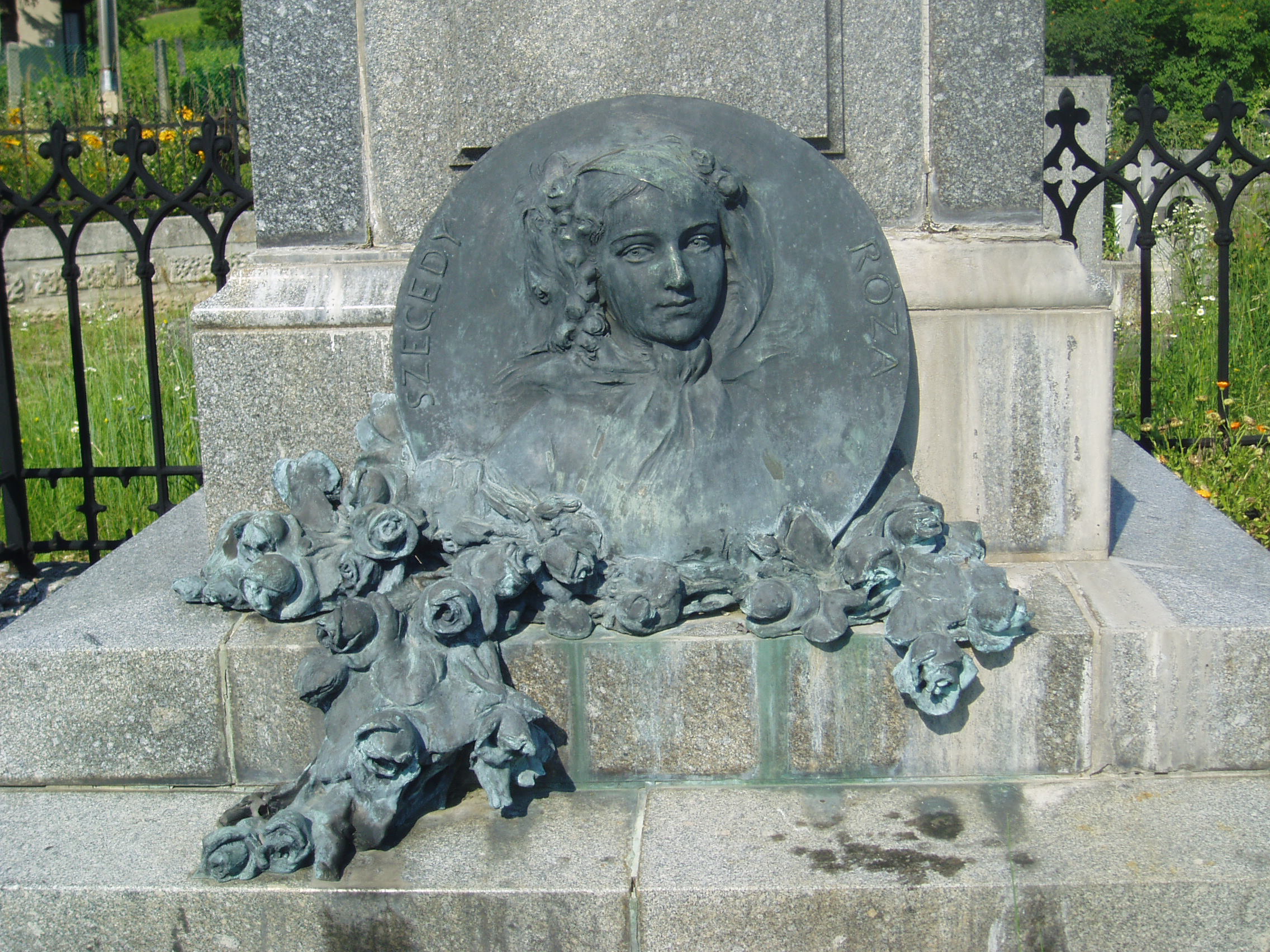Nyilvános 1183 | 2054 | Sümeg, Temető. Kisfaludy Sándor és Szegedi Róza sírja | Sümeg délkeleti határában, a Tapolcára vezető út mellett emelkedő lankás domboldalon találjuk a város köztemetőjét. Helyét még Bíró Márton püspök jelölte ki; jelentősebb számban a XIX. század eleje óta kezdtek ide temetkezni. A temetődomb tetején áll az 1816-ban épített, későbarokk stílusú temetőkápolna. Körülötte a sümegi élet utolsó két évszázada szinte valamennyi híres személyiségének sírja fellelhető. A temető leglátogatottabb síremléke Kisfaludy Sándor (1772-1844) és felesége, Szegedy Róza (1775-1832) sírja. A korábban elhunyt Szegedy Róza földi maradványait az 1900-as évek elején helyezték át férje sírjába. Akkor már a költő sem eredeti helyén nyugodott, erre a díszsírhelyre 1869-ben hozták át koporsóját. A timpanonos lezárású szürke gránit sírkövet megkoronázó Kisfaludy Sándor-mellszobor Gerenday Antal 1869-ben készített alkotása. A sír háromlépcsős talapzatának középső fokára helyezték Szegedy Róza lépcsőre hulló rózsákkal díszített portrédomborművét, amelyet Istók János készített 1904-ben. A fénykép 2007 júniusában készült. Felh. irod.: Koppány Tibor - Kozák Károly: Sümeg útikalauz. Veszprém, Idegenforgalmi Hivatal, 1965 Sümegi kalauz. Sümeg, Sümegi Fórum Alapítvány, 1993 Miklósi-Sikes Csaba: Kőbe vésett történelem. A sümegi városi temetők története és sírjelei 1950-ig. Sümeg, Sümegi Fórum Alapítvány, 2002 Veszprém megyei életrajzi lexikon. Veszprém, Veszprém Megyei Önkormányzat Közgyűlése, 1998 |