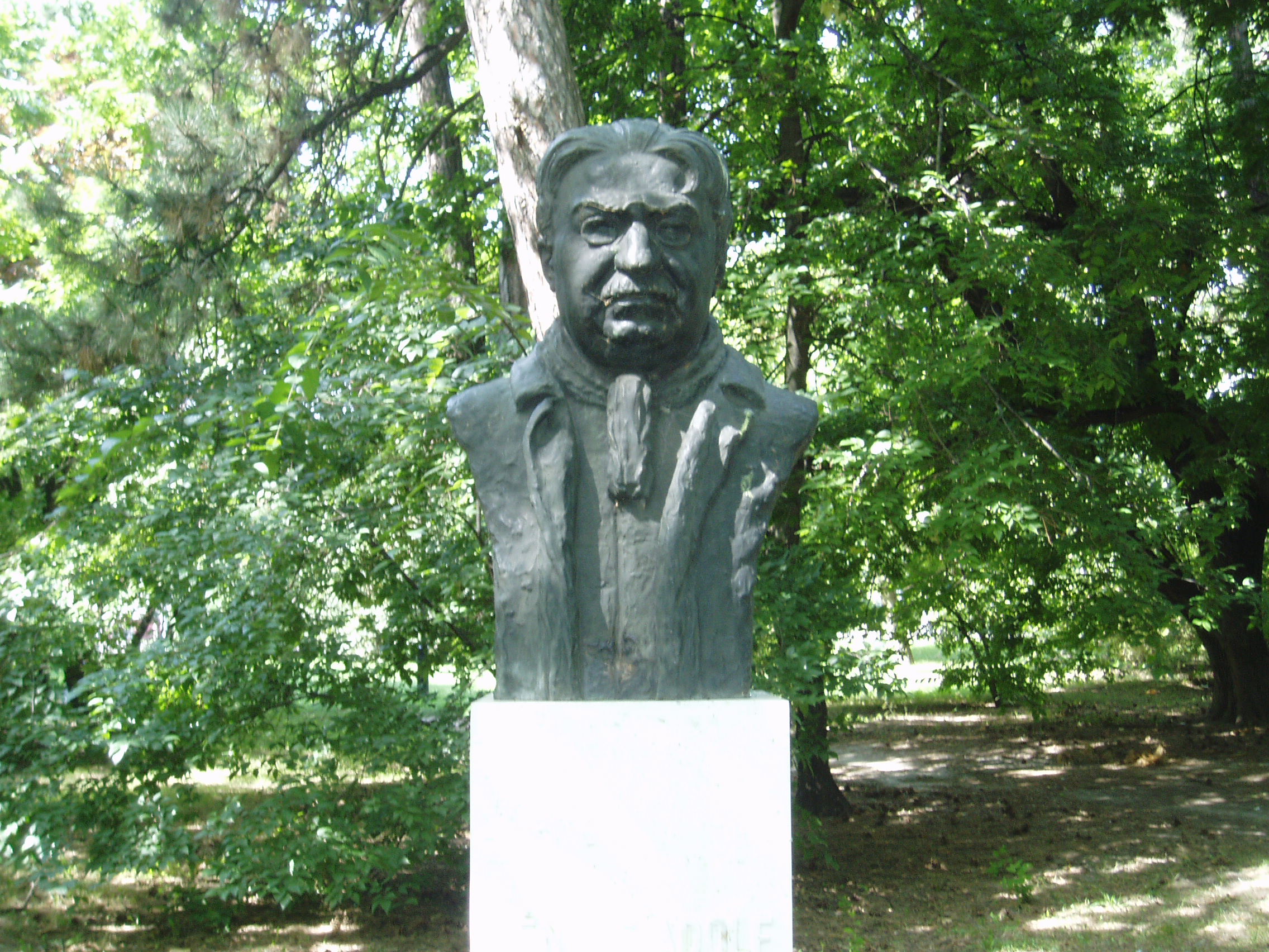 Nyilvános 1028 | 1596 | Kecskemét, Katona József park: Fényes Adolf szobra | A Vasútállomás közelében levő parkban alakították ki Kecskemét panteonját. Fényes Adolf (1867-1945) kecskeméti születésű festőművész szobra Petri Lajos alkotása. A fénykép 2006 augusztusában készült. Felh. irod.: Heltai Nándor: Kecskemét. Kecskeméti Lapok, 1998 |