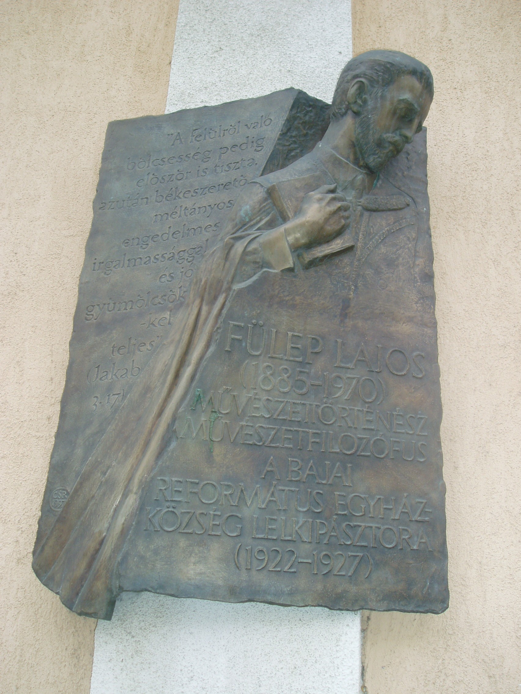Nyilvános 1630 | 3487 | Baja, Deák Ferenc utca 17. Református templom | A bajai egyház alapjait a felvidékről érkező református családok tették le a XVIII. században. Mai, eklektikus stílusú templomuk 1892-ben készült el Szeberény János tervei szerint. Mint a homlokzatán elhelyezett portrédomborműves emléktáblán olvasható, itt volt lelkipásztor 1922 és 1927 között Fülep Lajos (1885-1970) művészettörténész, művészetfilozófus. A fénykép 2007 októberében készült. Felh. irod.: http://bacs-kiskun.hu |