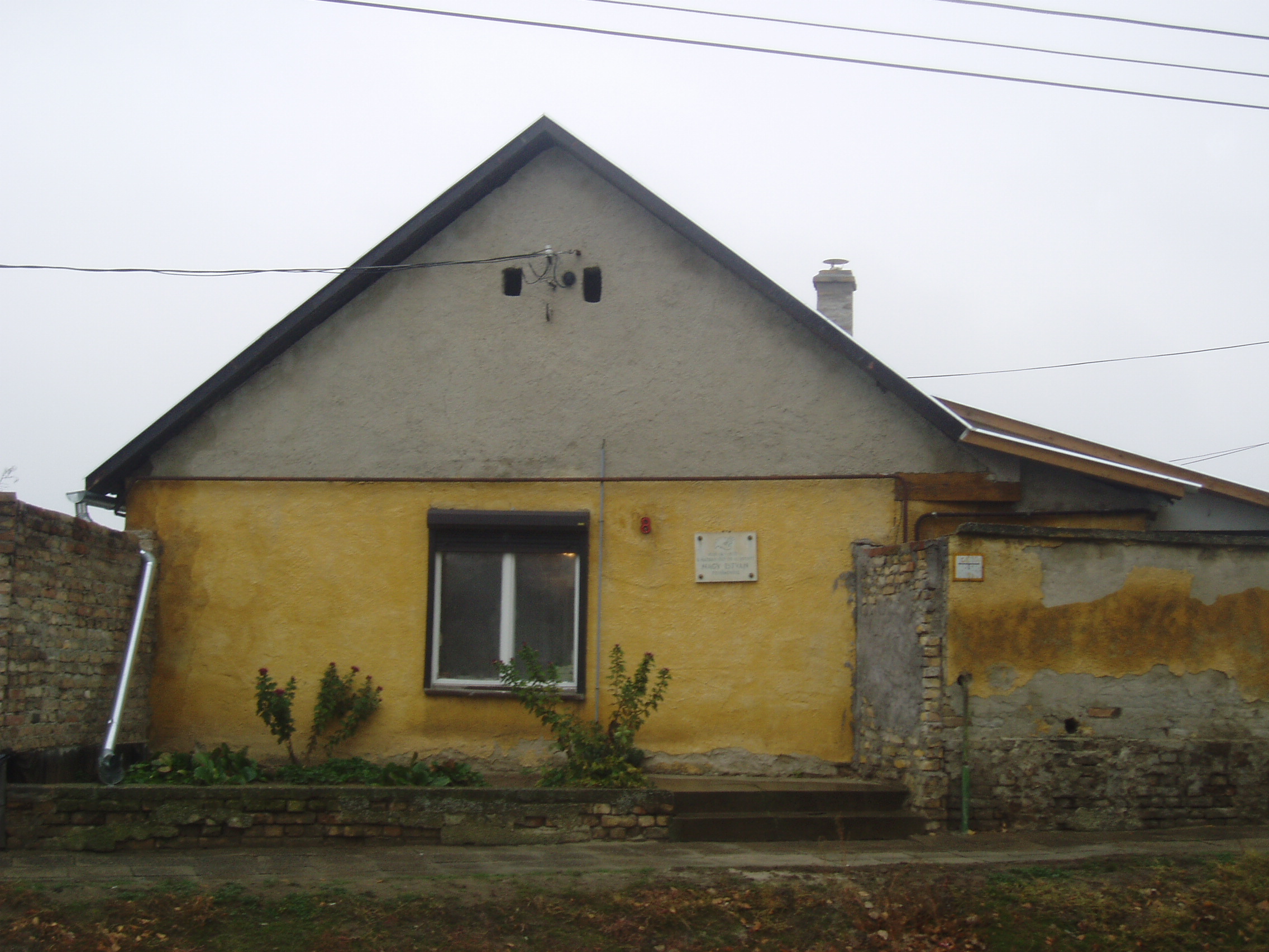 Nyilvános 1167 | 1716 | Baja, Nagy István utca 8. | Mint a homlokzatán elhelyezett emléktáblán is olvasható, ebben a kis házban töltötte életének utolsó évtizedét Nagy István (1873-1937) festőművész, akit már a kortársak is „a székelyek Rembrandtjá”-nak, „a magyar Van Gogh”-nak neveztek. A Csík megyéből származó művész egy alföldi kistelepülésen tanítóként működött, amikor egy iskolai kiállítás alkalmával felfedezték tehetségét. Így került a Mintarajztanodába, Székely Bertalan mellé, majd 1899-ben Münchenbe, ahol több akadémiai díjat nyert. Ösztöndíjjal jutott ki 1900-ban a párizsi Julian Akadémiára és 1902-ben Olaszországba. Visszatérve szülőföldjén, az erdélyi Csík megyében telepedett le és kezdett dolgozni a Gyilkos-tó környékén. Részt vett az első világháborúban, s noha hivatalosan nem volt hadifestő, a fronton számos rajzot készített, főként katonaportrékat. A háború után rövid ideig Erdélyben élt, majd Budapestre költözött, de megfordult Szentes környékén, Koszta József mellett is. Nagyszabású gyűjteményes kiállítása 1923-ban általános elismerést vált ki. Többek között Kosztolányi Dezső és Lyka Károly írtak alkotásairól lelkesedéssel, Surányi Miklós pedig regényt írt róla. A húszas évek második felében ismét Erdélyben dolgozott és itt is állított ki, bejárta Magyarországot, volt Jugoszláviában, míg betegsége végleges letelepedésre kényszerítette. Feleségével és fiával ekkor telepedett le Baján. Itt hunyt el 1937-ben, sírja abban a temetőben (lásd: Baja, Kálvária temető) van, amelyre naponta rálátott ablakából. Több mint 4000 művét tartják számon. Legtöbb műve a róla elnevezett bajai képtárban (lásd: Baja, Arany J. u. 1.) található. A fénykép 2007 októberében készült. Felh. irod.: Solymár István: Nagy István. Bp. Képzőművészeti Alap, 1977 Pap Gábor: Nagy István. Bp. Corvina, 1965 www.baja.hu |