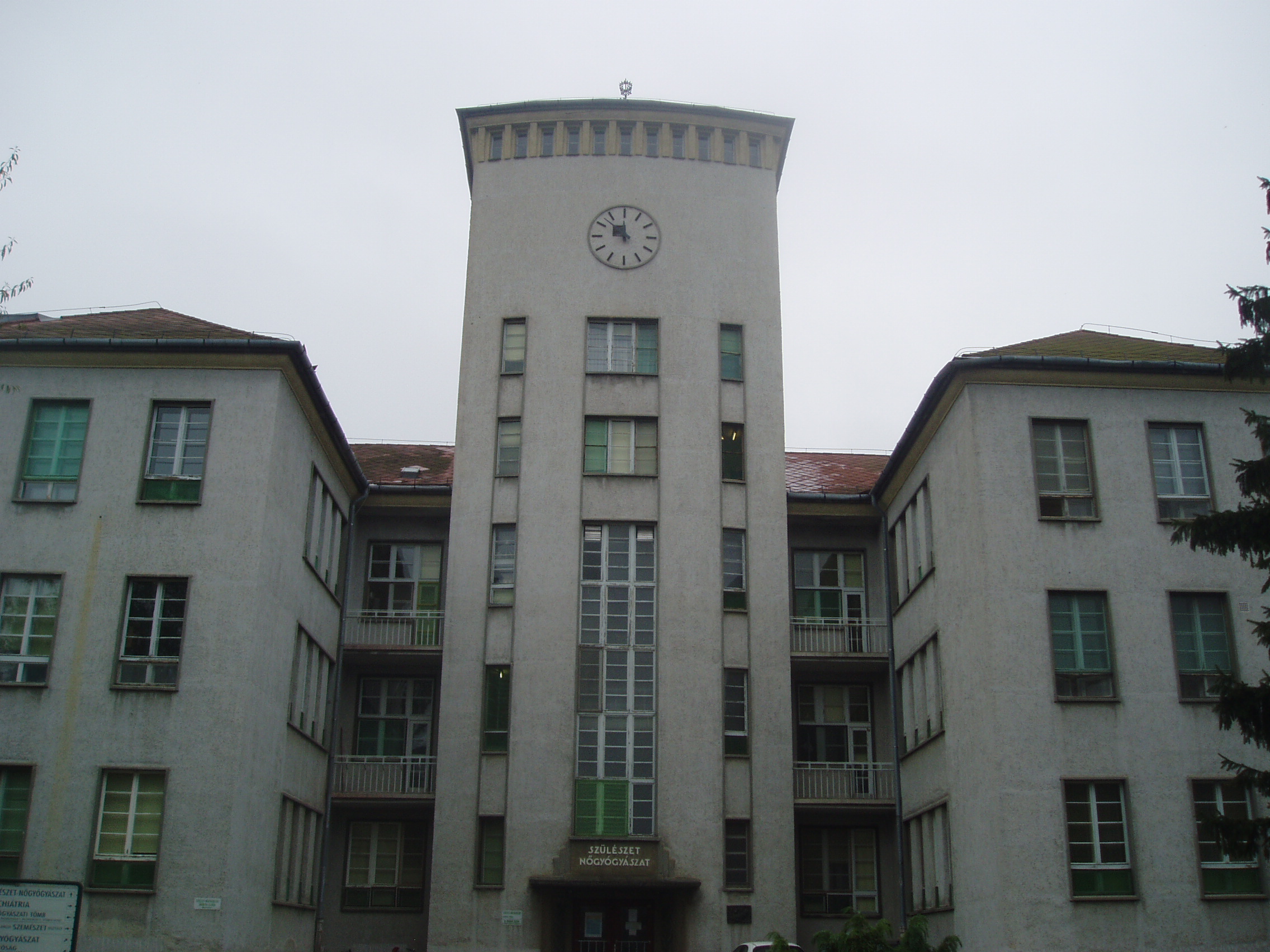 Nyilvános 1186 | 1744 | Baja, Rókus utca 10. Városi Kórház | Mint az előcsarnokban elhelyezett emléktáblán olvasható, a képen látható épület 1938/39-ben épült a kórház akkori igazgató-főorvosa és első szülész főorvosa elgondolásai alapján. Dr. Burg Ete itt élt és dolgozott, s 1958-ban munka közben itt hunyt el. A fénykép 2007 októberében készült. |