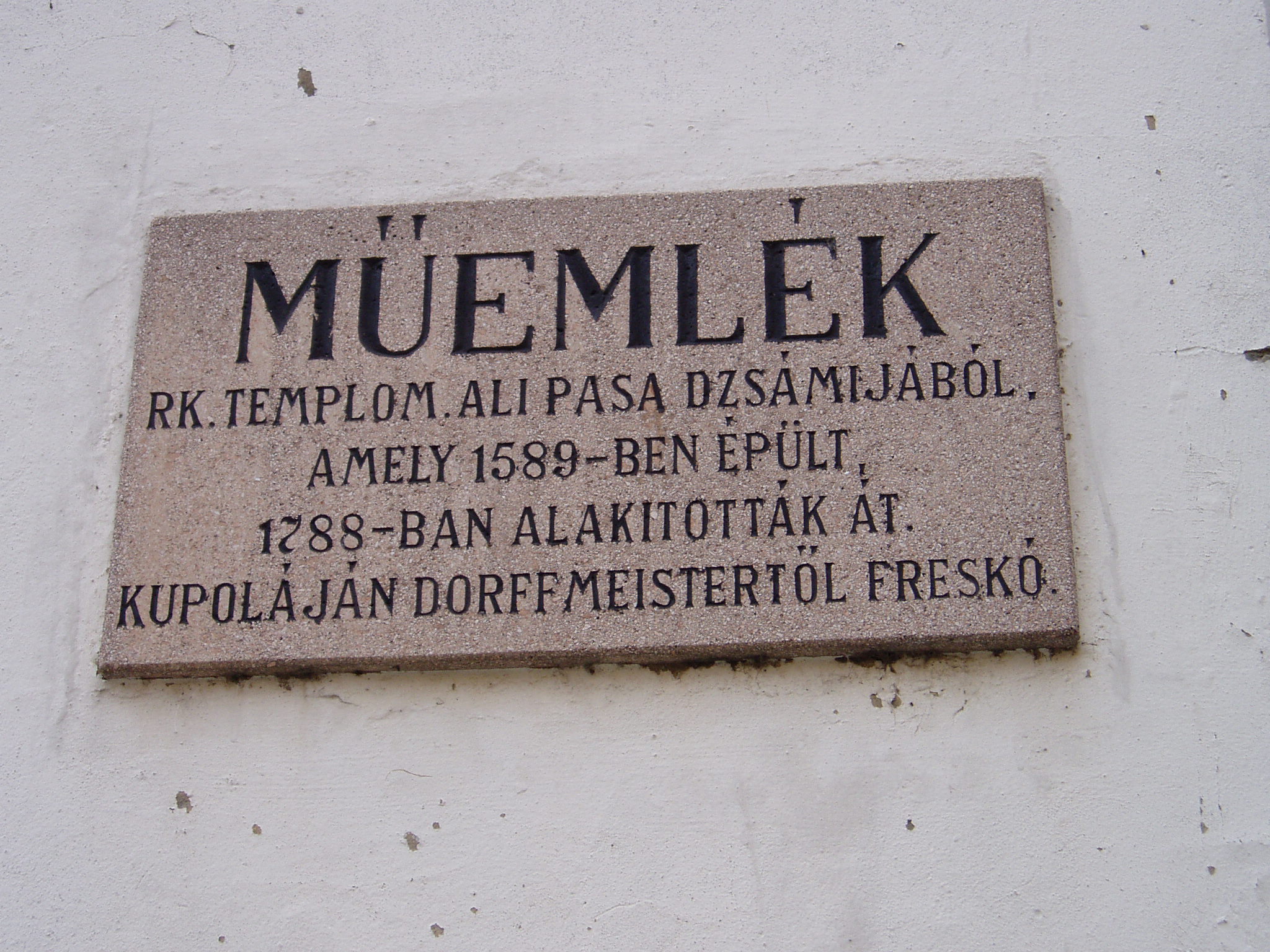 Nyilvános 1309 | 1900 | Szigetvár: Zrínyi tér 9. Szent Rókus-templom | Ali pasa 1589-ben épült dzsámiját átalakítva épült fel 1788-ban a Szent Rókus tiszteletére felszentelt templom. Az átalakításkor eltüntették az imafülkét, elbontották Ali pasa sírkápolnáját, és előcsarnokkal, karzattal, szentéllyel bővítették. A kupolát Dorffmeister István 1789-ben készült barokk freskója díszíti, amely a vár elestét és visszafoglalását ábrázolja. Dorffmeister alkotta a templom oltárképét is. Itt három, egykor török mosdómedencének használt szenteltvíztartó található. A fénykép 2005 júniusában készült. Felh. irod.: Látnivalók Pécsett és Baranyában. Miskolc, Well-PRess, 1998 www.vendegvaro.hu |