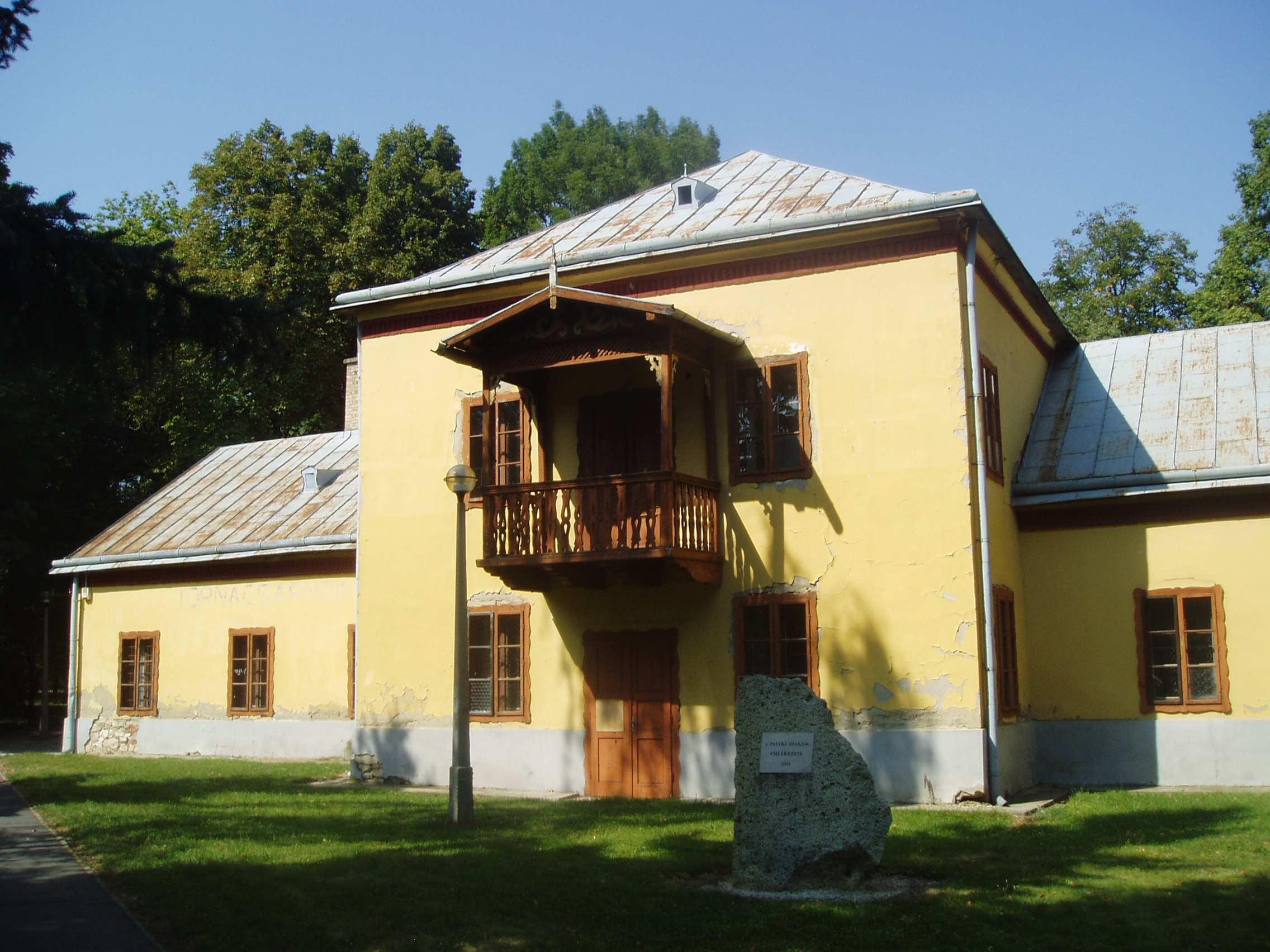 Nyilvános 1199 | 1741 | Sárospatak, Iskolakert: Tornacsarnok | A Református Kollégium (lásd: Sárospatak, Rákóczi u. 1.) bejáratával szemben találjuk az Iskolakertnek nevezett parkot. Az 1980-as években természetvédelmi területté nyilvánított Iskolakert sajátos nemzeti érték, mely egyedülálló az országban. Területén építették meg 1878-ban a kollégium tornacsarnokát, melyet az ország legrégibb tornatermének tartanak. Patak régóta fontos feladatnak tekintette a tanulók testi nevelését. Már 1838-ban játékteret alakítottak ki a diákoknak. S bár hazánkban a szertornázás kezdetét csak 1868-tól számítják, Patakon már 1854-ben használták a gimnasztikai szereket. A tornacsarnok, korabeli szóval "testgyakorda" építésével a kollégium megelőzte a Pesti Nemzeti Tornaegylet megalakulását. 1868-ban uszodát is építettek. A kollégium alsóbb osztályaiban a testgyakorlat már 1853-tól rendes tantárgy volt, amit az állam csak 1868-ban tett kötelezővé. Más szempontból is gondoltak az egészségvédelemre: 1791-től a kollégiumnak külön iskolaorvosa volt, s itt létesült 1863-ban az első magyar iskolai kórház is. A fénykép 2007 augusztusában készült. Felh. irod.: Ködöböcz József: Lakóhelyünk Sárospatak és körzete. Sárospatak, 2000 |