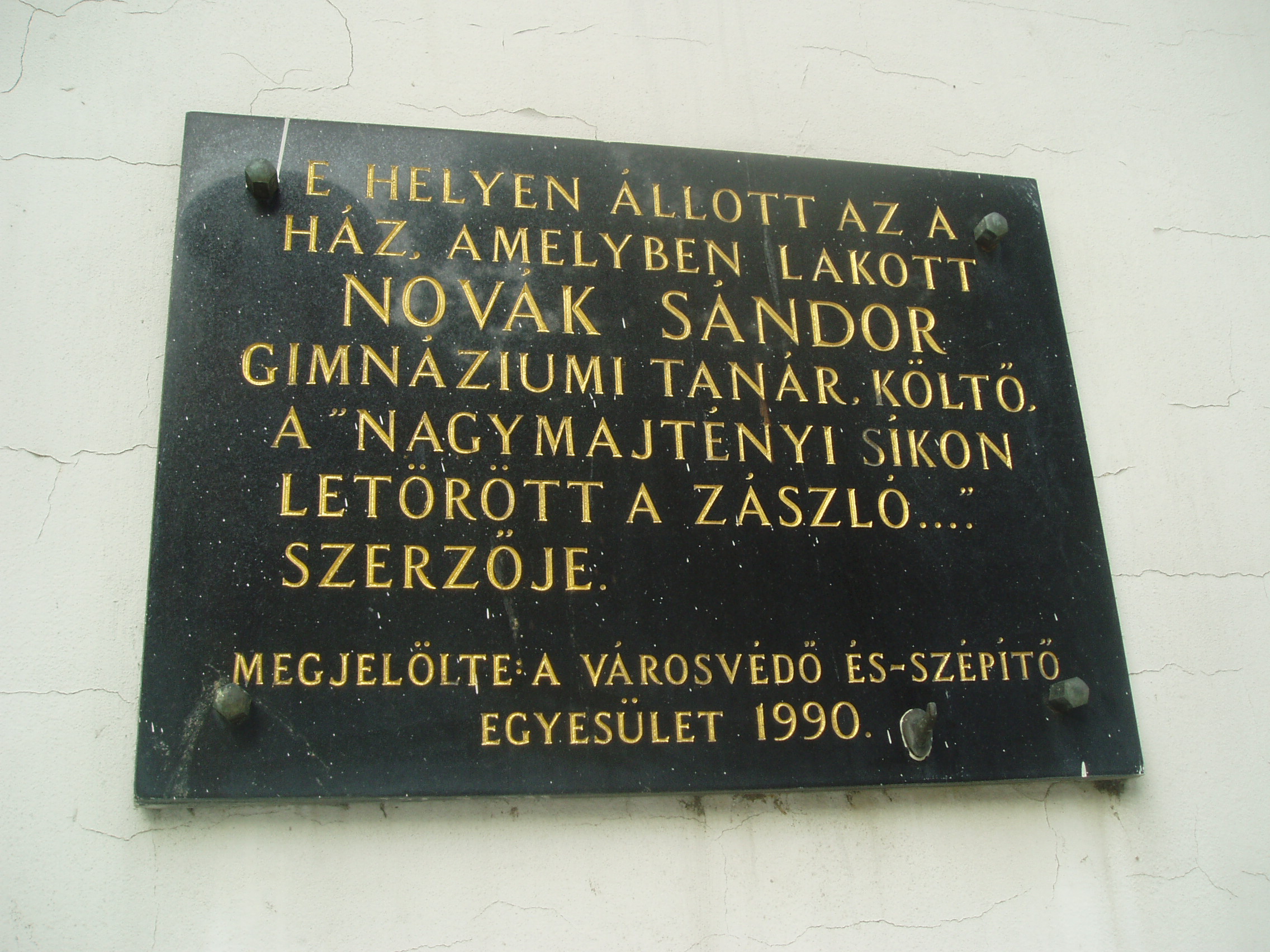 Nyilvános 1163 | 1661 | Sárospatak, Rákóczi utca 32. | Az épület voltaképpen már a Hild tér részét képezi, amelyet Makovecz Imre és az általa a munkába bevont fiatal építészek tervei alapján alakítottak ki az 1980-as években. Itt, a Hild tér felőli oldalon helyezték el Novák Sándor gimnáziumi tanár emléktábláját: E HELYEN ÁLLOTT AZ A HÁZ, AMELYBEN LAKOTT NOVÁK SÁNDOR GIMNÁZIUMI TANÁR, KÖLTŐ, A „NAGYMAJTÉNYI SÍKON LETÖRÖTT A ZÁSZLÓ….” SZERZŐJE. MEGJELÖLTE A VÁROSVÉDŐ ÉS –SZÉPÍTŐ EGYESÜLET 1990. Az eredeti, a Rákóczi utca 44. számot viselő lakóházat, amelyet még 1966-ban jelöltek meg emléktáblával, lebontották. Az emléktáblán is említett, országszerte kuruc dalként ismert ének zenéjét és szövegét valójában Novák Sándor írta, aki a XX. század első évtizedeiben volt a gimnázium tanára. A fénykép 2007 augusztusában készült. Felh. irod.: www.sarospatak.hu/nevezetessegek Barsi Ernő – Szabó Ernő: A pataki kollégium zenei krónikája. Bp. Zeneműkiadó, 1984 |