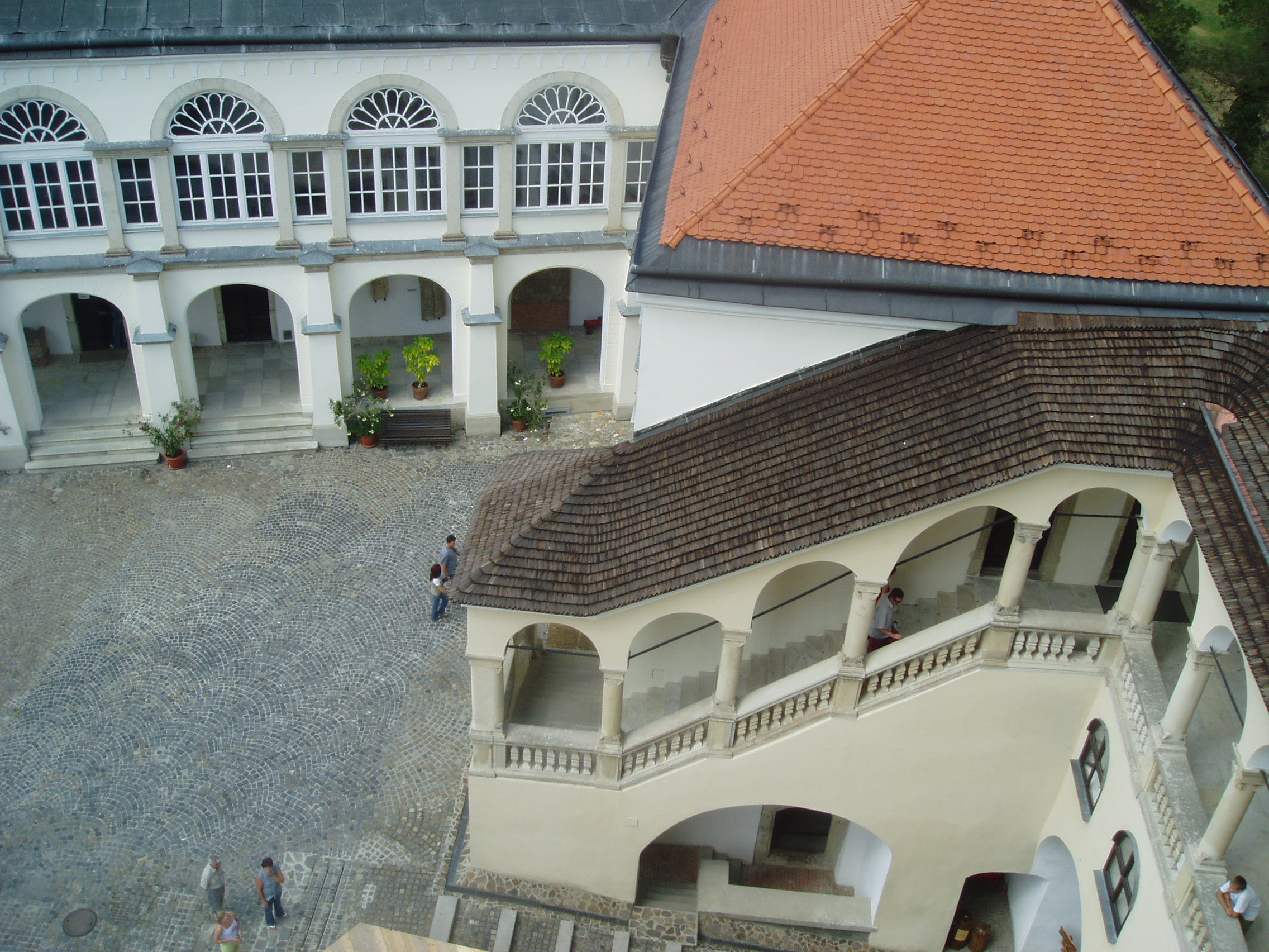 Nyilvános 1128 | 1603 | Sárospatak, Szent Erzsébet utca 19. Rákóczi-vár | A Vörös-torony legfelső szintjéről gyönyörű kilátás nyílik a külső várra, a városra, és az azt körülvevő változatos tájra. De szép lelátás kínálkozik a várkastély tarka tetőire, a várudvarra, az azt övező homlokzatokra és az árkádos loggiára is. A fénykép 2007 augusztusában készült. Felh. irod.: Détsy Mihály: Sárospatak. Bp. Corvina, 1974 Látnivalók Borsod-Abaúj-Zemplén megyében. Miskolc, Well-PRess, 1995 www.sarospatak.hu/nevezetessegek |