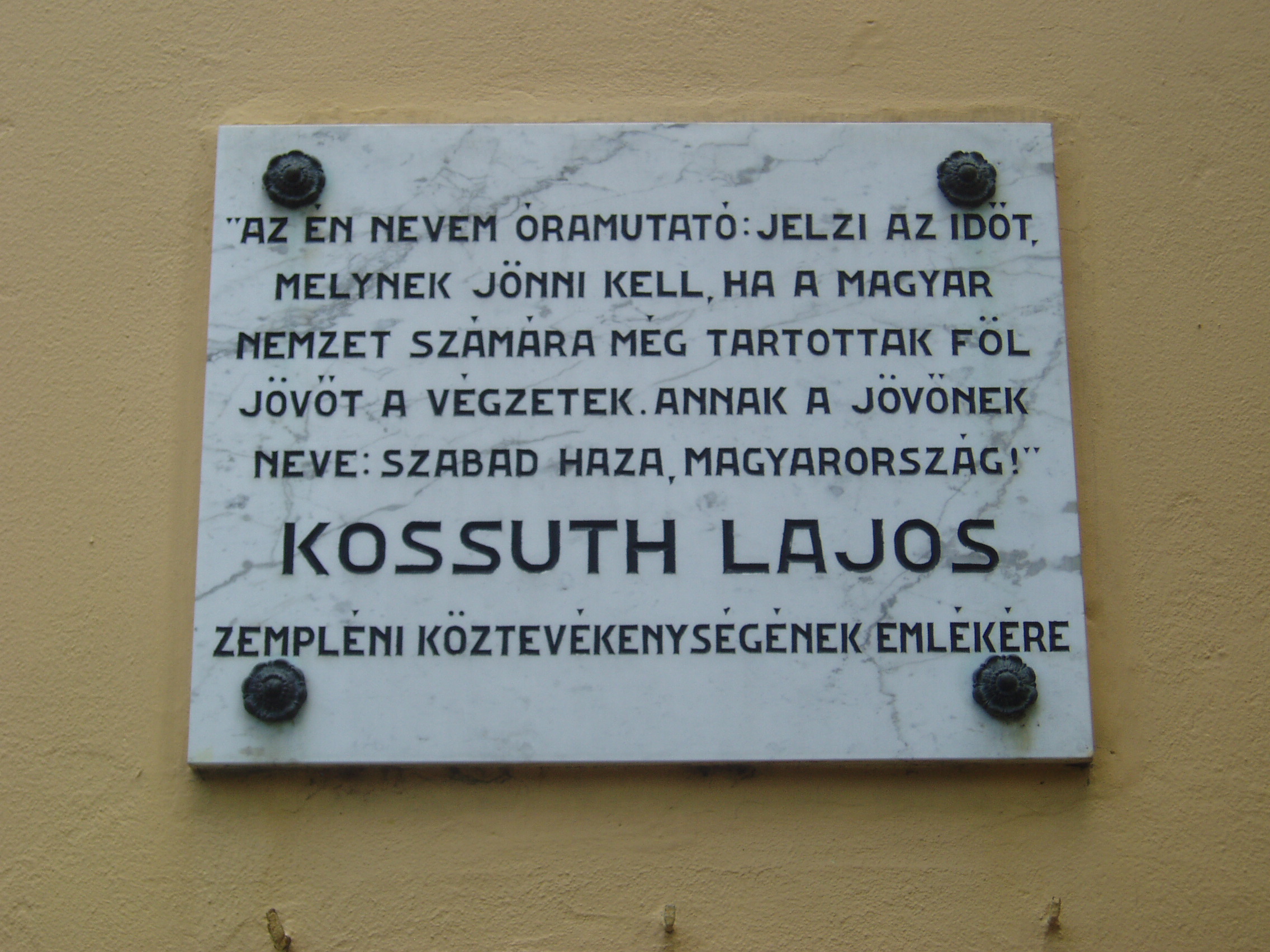 Nyilvános 1145 | 1980 | Sátoraljaújhely, Kossuth tér 5. | A városháza (volt megyeháza) a fő tér hangulatát meghatározó barokk stílusban épült 1754-1768 között. Az olasz építészek által tervezett épület impozáns méreteivel az állandóság és a méltóság érzetét kelti. A főbejárat fölötti erkély mögötti díszteremben mondta a fiatal Kossuth első szónoklatát 1831-ben, a koleralázadás idején (az útikönyvekben a beszéd helyeként következetesen az erkélyt említik). Kossuth Lajos szülei 1808. február végén Olaszliszkáról költöztek Újhelybe. 1810 és 1816 között a város piarista gimnáziumának növendéke volt. 1824-ben Pestet otthagyva visszatért Újhelyre, ahol magánügyvédként dolgozott. 1827-ben Zemplén megye táblabírája, 1830-ban Sátoraljaújhely, 1832-ben a vármegye ügyésze lett. Közéleti szereplése 1831-ben a vármegyei közgyűlésen a kolerajárvány kapcsán a jobbágyság társadalmi helyzetéről elmondott beszédével kezdődött. Kossuth többször is felszólalt az épületben, az akkori megyeházán, mint a formálódó ellenzék egyik vezérszónoka. Szokatlan és merész szónoklatait szemtanúként az idős Kazinczy Ferenc is felemlegette levelezésében. Egyik protestáló felszólalását így örökítette meg: "Erre felkele Kossuth Lajos, s oly tűzzel, mintha kezében volna a zendítés szövétneke, két kezét csípejére rakván, képzelhetetlen vakmerőséggel tartá beszédét." Kossuth sátoraljaújhelyi emlékét utca, tér, szobor, több intézmény és emléktábla őrzi. Emléktábla található egykori iskolája falán (lásd: Sátoraljaújhely, Deák F. u. 10-12.), a városháza dísztermében, illetve azon házakon, ahol egykor ő, illetve szülei, testvérei laktak (lásd: Sátoraljaújhely, Móricz Zs. u. 17. és Hősök tere 8.). A fénykép 2007 augusztusában készült. Felh. irod.: Látnivalók Borsod-Abaúj-Zemplén megyében. Miskolc, Well-PRess, 2003 www.satoraljaujhely.hu/nevezetessegek www.vendegvaro.hu Fehér József: Két újhelyi Kossuth-legenda. = Széphalom. A Kazinczy Társaság Évkönyve 12. kötet, 2002 |