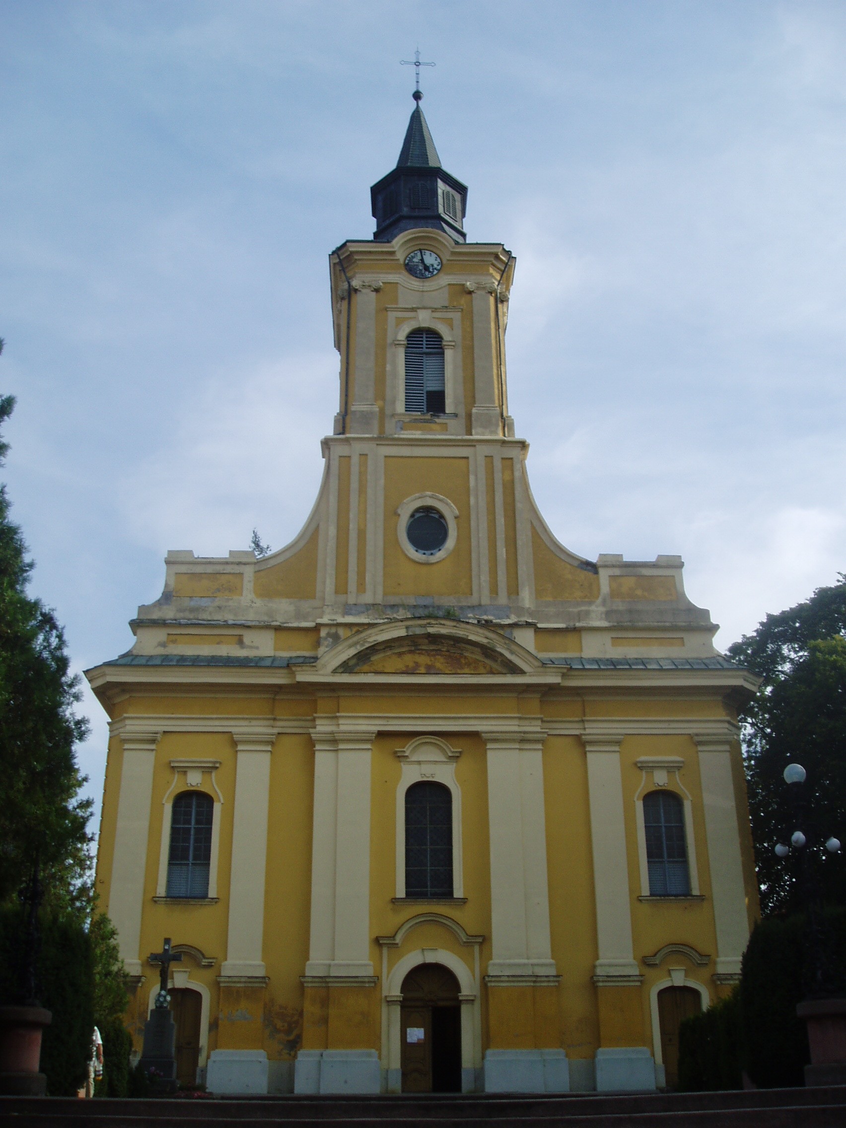 Nyilvános 1161 | 1726 | Sátoraljaújhely, Széchenyi tér: Nagytemplom | A későbarokk stílusú épület helyén a Szent Imréről elnevezett templom állt. A mai templom a többszöri tűzvész, átépítés és a katolikusok, reformátusok közötti birtoklás után, 1768 és 1798 között épült fel. Jelenlegi formáját a XX. század elején végzett bővítések során kapta. Főoltárát Hild Lipót készítette. A templom nyugati falánál áll Szent Flórián, a tűzoltók, kéményseprők, kovácsok, serfőzők védőszentjének szobra. A Nagytemplom és a Kossuth-szobor között az ún. Nimfás-kút csörgedezteti a hegyekből lefutó Dörzsik-forrás vizét. A fénykép 2007 augusztusában készült. Felh. irod.: Látnivalók Borsod-Abaúj-Zemplén megyében. Miskolc, Well-PRess, 2003 |