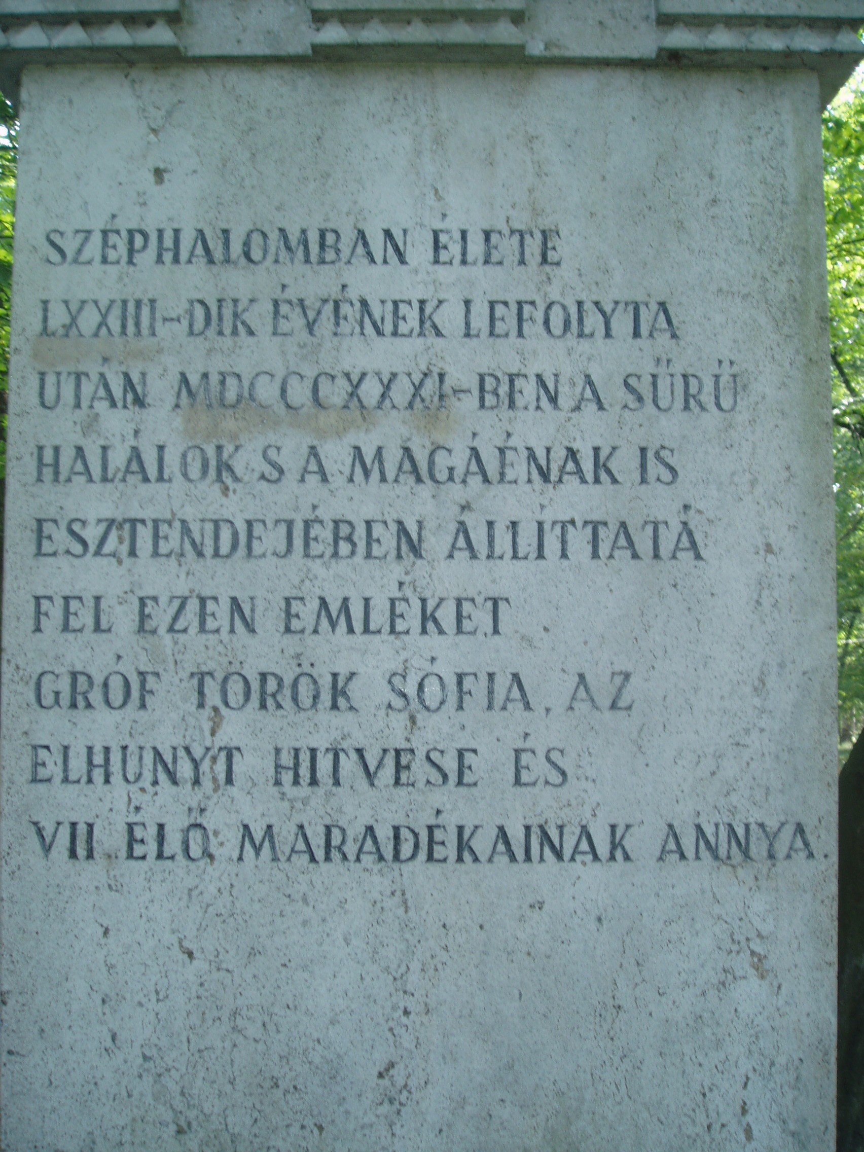 Nyilvános 988 | 1568 | Széphalom: A Kazinczy család sírkertje - Kazinczy Ferenc sírja | A Kazinczy Emlékcsarnok parkja - Kazinczy Ferenc egykori kúriájának kertje - ma természetvédelmi terület. A mauzóleumból fasor vezet a Kazinczy család sírkertjébe. A sírkert helyét 1806-ban, első gyermeke, az egyéves korában elhunyt Iphigenia halálakor Kazinczy maga jelölte ki. Már akkor megírta barátainak, hogy felesége és ő is oda fognak temetkezni. Kazinczy Ferenc 1831. augusztus 22-én hunyt el széphalmi otthonában. Sírja már a reformkorban zarándokhely lett. Járt itt Petőfi Sándor is 1847. júliusában. Az emlékoszlop alatt nyugszik az író és felesége, az oszlop körül pedig négy gyermekük, két unokájuk, három dédunokájuk és az a szolgálójuk, aki Kazinczyval együtt raboskodott Munkács várában. Legkisebbik fiuk, Lajos, Aradon szenvedett vértanúhalált a honvédsereg ezredeseként. A fénykép 2007 augusztusában készült. Felh. irod.: Látnivalók Borsod-Abaúj-Zemplén megyében. Miskolc, Well-PRess, 2004 www.vendegvaro.hu Busa Margit: Adalékok a Kazinczy család történetéhez. = Széphalom. A Kazinczy Ferenc Társaság Évkönyve 12. kötet, 2002 |