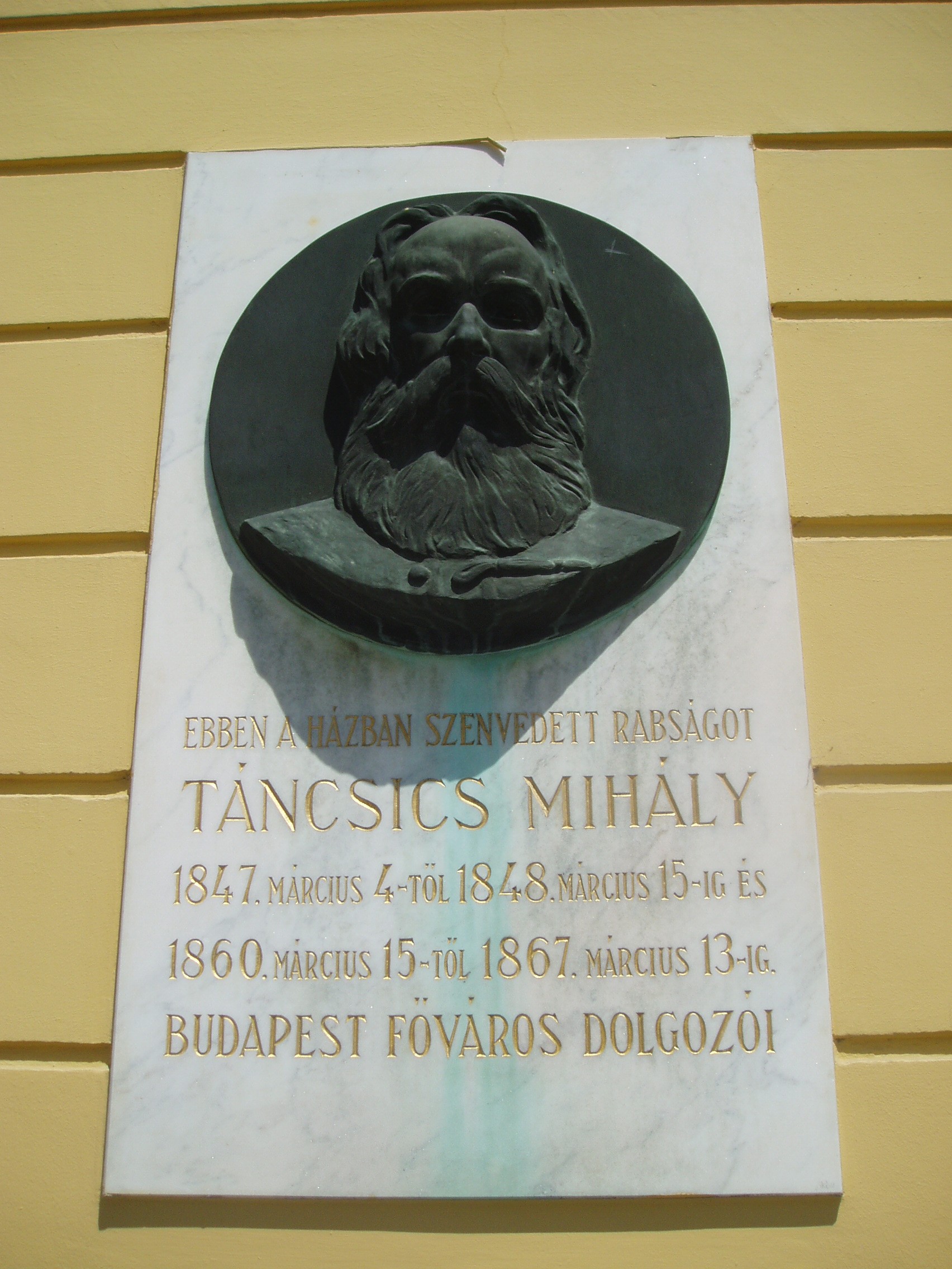 Nyilvános 1220 | 1962 | Budapest I. Táncsics Mihály utca 9. | A volt József Kaszárnyát 1810 körül emelték késő barokk stílusban. Egyes feltételezések szerint körülbelül ezen a helyen volt a XIII-XIV. században a királyi pénzverde és a Nagy Kúria, amely 1301-ben Vencel király otthonául szolgált, 1354-ben pedig Nagy Lajos király városi kúriájaként említik. A kaszárnyaépület udvarán két méter vastag falú emeletes ház áll, valószínűleg 1720 körül építették. Eredetileg puskaporraktár volt, majd a XIX. század elejétől börtönnek használták. A főépületben, az első emeleten raboskodott Kossuth Lajos 1837-től 1840-ig, itt tanult meg angolul. Táncsics Mihály két alkalommal is lakója volt a börtönnek. Először 1848. márc. 4-től 1848. március 15-ig, amikoris Petőfi vezetésével Pest ifjúsága szabadította ki, majd 1860. március 15-től 1867. március 13-ig. Mindkét fogságáról részletesen írt Életpályám c. önéletrajzi művében). Portrédomborműves emléktábláikat Berán Lajos készítette. Itt volt bebörtönözve 1839-től Wesselényi Miklós, akit három évi várfogságra ítéltek. Itt hatalmasodott el szembetegsége, ezért a csehországi grafenbergi gyógyintézetbe internálták. Czuczor Gergelyt 1849. január 18-án Riadó c. verséért tartóztatták le és ide hozták vizsgálati fogságba. Írótársai közbenjárására a börtönben is dolgozhatott az Akadémia megbízásából készülő magyar nyelv szótárán. Buda visszavételekor, 1849. május 21-én a honvédek szabadították ki. Világos után újra bebörtönözték, ekkor Kufsteinben raboskodott. A fénykép 2007 májusában készült. Felh. irod.: Somorjai Ferenc: Budapest. Bp. Medicina, 1996 Erős Zoltán: Magyar irodalmi helynevek A-tól Z-ig. 2. bőv. átd. kiad. Bp. Kis-Lant Kiadó, 1995 |