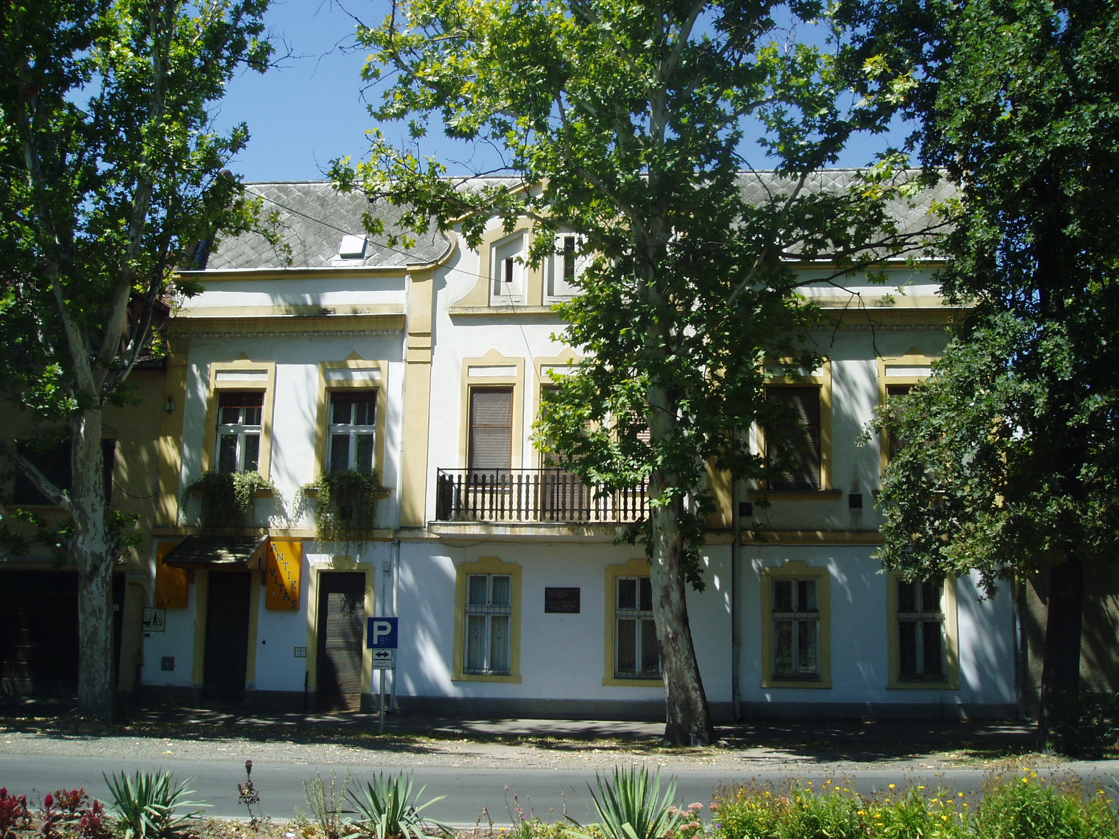 Nyilvános 1587 | 3688 | Hódmezővásárhely, Ady utca 4. | 1933-tól itt, az egykori Villasor 14. számú házban lakott dr. Makai Ödön ügyvéd, József Attila sógora. Első felesége József Jolán volt, akitől 1929-ben elvált és a másik nővért, József Etát vette feleségül. A vásárhelyi születésű ügyvéd korábban a Szántó Kovács János utca 28. számú házban, a városközponthoz közel lakott, majd a család ebbe a villa jellegű házba költözött. József Attila gyakran volt náluk vendégségben. 1934 tavaszán négy hónapon keresztül náluk lakott, több verse is itt született. Ekkor ismerkedett meg - ebben a lakásban - a Hódmezővásárhelyre látogató Móricz Zsigmonddal is. Megismerkedésük történetét Móricz József Attila halála kapcsán a Szép Szó folyóirat számára írta meg. Makainak és József Etának három gyermeke született: Zsuzsi, Péter és Ádám. Makai Péter jeles díszlet- és jelmeztervező lett, a Magyar Állami Operaházban működött. Az épületen 1970-ben helyezték el József Attila emléktábláját. A fénykép 2007 júliusában készült. Felh. irod.: Szigeti János: József Attila Hódmezővásárhelyen. = www.nlvk.hu/vik/jahmv.htm |