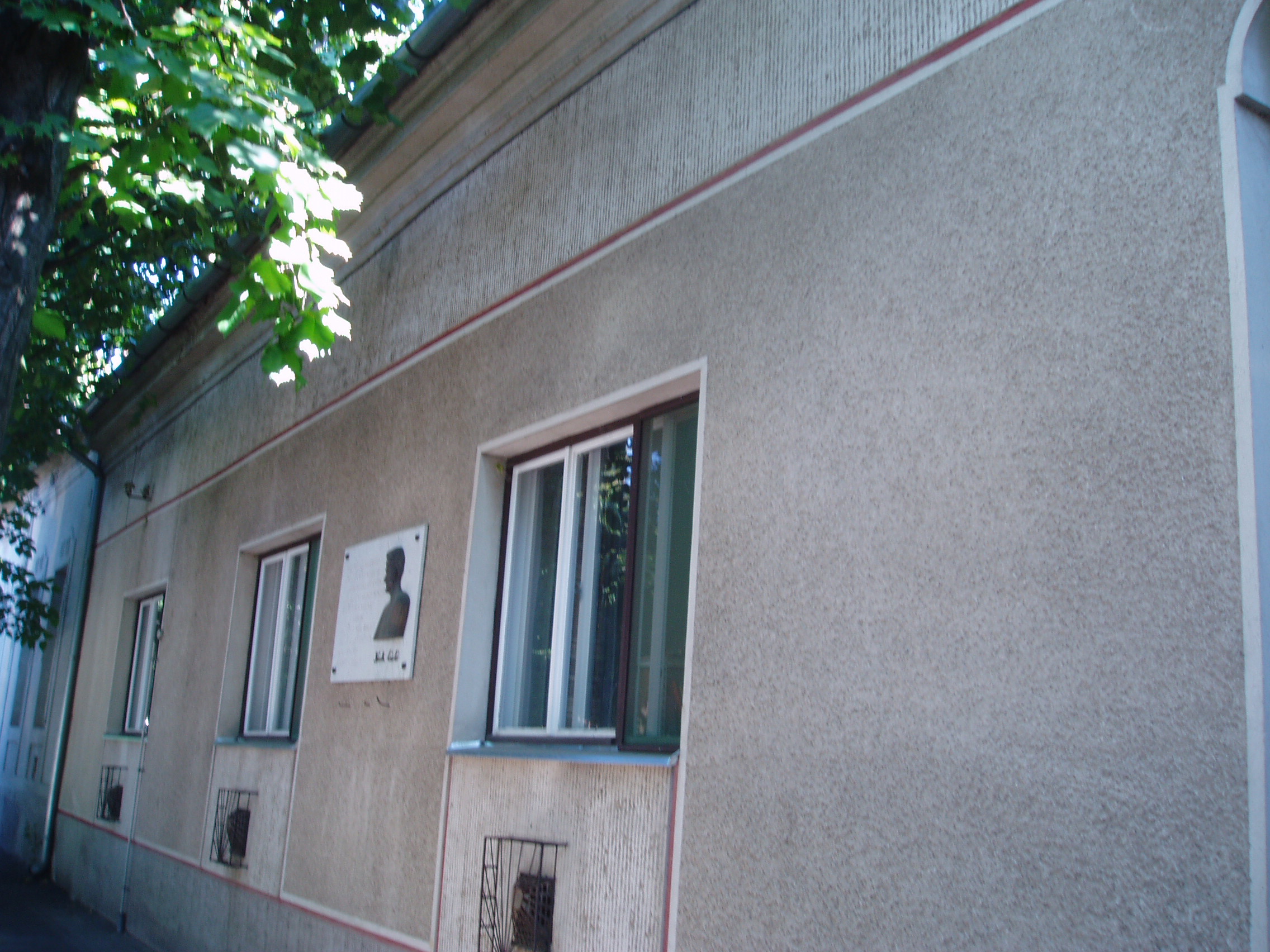 Nyilvános 1611 | 3222 | Hódmezővásárhely, Bercsényi utca 27. | Németh László 1945 szeptemberében Hódmezővásárhelyre költözött, s óraadó tanárként dolgozott a gimnáziumban. 1946 tavaszáig az Andrássy utca 9. számú épület (lásd ott) emeletén lakott, onnét költözött a Kristó-házba, a Bercsényi utca 27. alá. Belépve az udvarra, a ház végében áll a kis kerti lak, amelynek verandáján az első vásárhelyi művek, a "Mathiász panzió" és "A tanügy rendezése" íródtak. Az utcai szobában az "Eklézsia megkövetés" (dráma Misztótfalusi Kis Miklósról), a "Széchenyi", az "Égető Eszter" és más jelentős alkotások születtek. Németh László egykori otthonát ma emléktábla jelöli, rajta az író vallomásos sorai a városról. A fénykép 2007 júliusában készült. Felh. irod.: Grezsa Ferenc: Németh László Vásárhelyen. = www.nlvk.hu/vik/nemethl.htm |