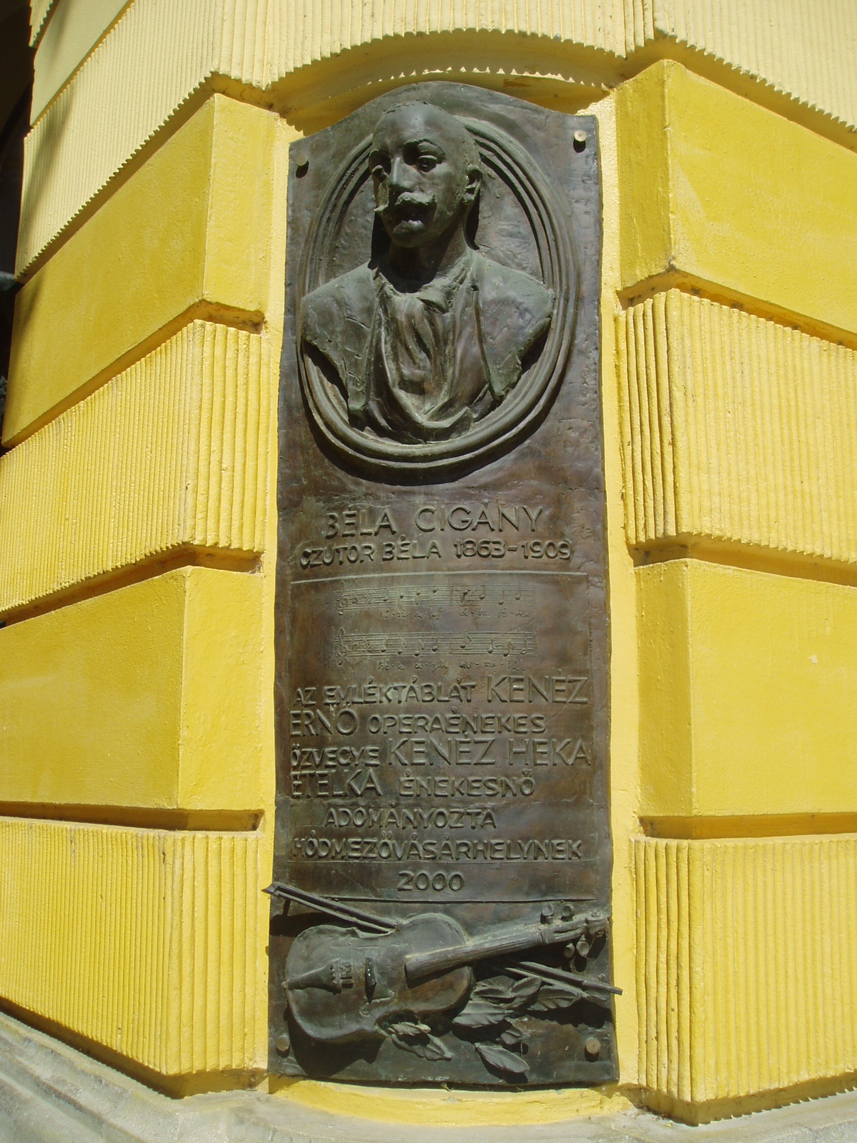 Nyilvános 1507 | 3259 | Hódmezővásárhely, Kossuth tér 3. | A Fekete Sas Szállodát a XX. század elején emelték eklektikus–neobarokk stílusban (1905-ben nyitották meg). A város fő terének egyik meghatározó épületét Pártos Gyula tervezte. Benne található a megye legimpozánsabb díszterme. A mai épület helyén már a XVIII. század elején a később „öreg” Sas-nak nevezett földszintes, majd 1830-ban emeletesre bővített kocsma és vendégfogadó állt. A XIX. század első felében itt tartották előadásaikat a városban vendégszereplő színtársulatok. 1827. júniusában Kilényi Dávid társulatának tagjaként fellépett itt Déryné Széppataki Róza is. Szintén még az öreg Sasban muzsikált a XIX. század utolsó éveiben 12 tagú bandája élén Czutor Béla (1863—1909). "Béla cigány" a régi Vásárhely zenei életének jellegzetes figurája volt. Muzsikus cigány családba született őstehetség, aki ugyan csak három osztályt járt, de divatos üdülőhelyeken, Tátrafüreden, a Margitszigeten, Herkulesfürdőn, Brassóban lépett fel. Dankó Pista dalainak egyik legavatottabb tolmácsolója volt. Dankó — Pósa Lajos versére — nótát is írt zenéjének kiváló interpretálójáról: "Vásárhelyi sétatéren Béla cigány muzsikál… " A megénekelt sétatér híres fasorának eleje a mai épület keleti oldalánál ma is látható. A ma rendezvényházként működő, gyönyörűen felújított épület fasor felőli sarkán márványtábla őrzi Béla cigány emlékét. A fénykép 2007 júliusában készült. Felh. irod.: Barangolások Csongrád megyében. Miskolc, Well-PRess, 1997 /Vendégváró/ Arató László - Batyi Zoltán: Hódmezővásárhely az alföldi művészváros. Hódmezővásárhely, 2004 Kőszegfalvi Ferenc: Hódmezővásárhelyi évfordulók. = Honismeret 1983. 4. |