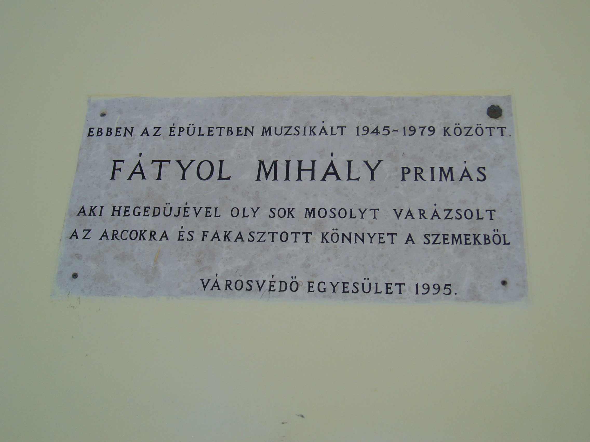 Nyilvános 1169 | 1586 | Makó, Széchenyi tér 10. Korona szálló | A Korona Szálló 1855-ben épült a korábbi püspöki vendégfogadó helyére. A jelenelegi impozáns, eklektikus épület több bővítés és felújítás eredményeként jött létre. Nagyvendéglőjét az 1870-es évek második felében Steingassner József, Tömörkény István (1866–1917) édesapja bérelte. Az épület Főtér felőli sarkán emléktábla örökíti meg, hogy gyermekkorában itt lakott Szeged nagy írója. A második világháború előtt itt — és más makói vendéglátó helyeken is — muzsikált bandájával Fátyol Jancsi, a kor egyik neves cigányprímása. Emléktábláját a Városvédő Egyesület állította. A fénykép 2007 júliusában készült. Felh. irod.: Barangolások Csongrád megyében. Miskolc, Well-PRess, 1997 www.mako.hu Makó története 1920-tól 1944-ig. Makó, 2004. /Makó város monográfiája 6./ |