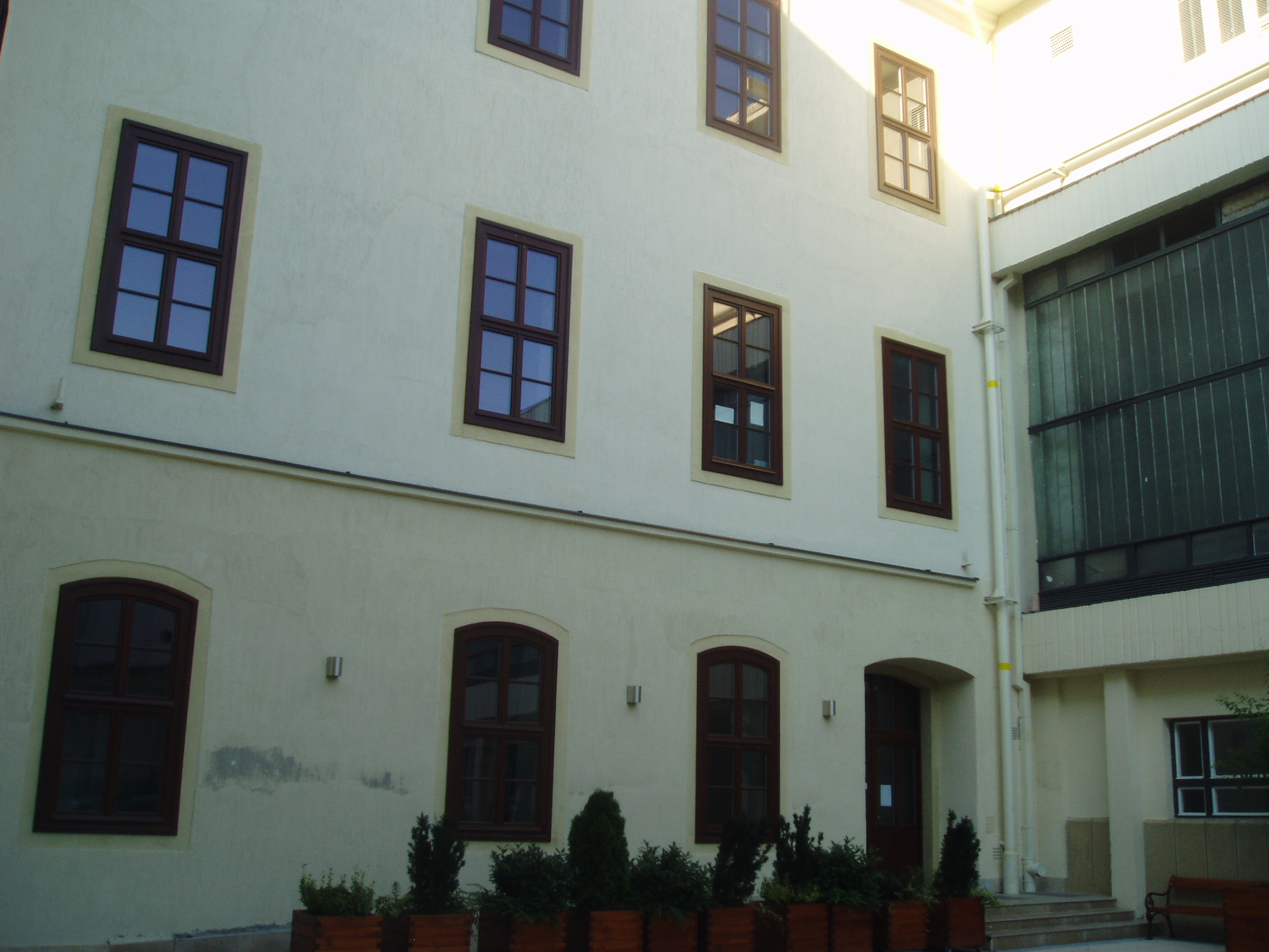 Nyilvános 1144 | 1676 | Sopron, Liszt Ferenc utca 1. | A Széchenyi István Gimnázium eredetileg reáliskola volt, amelyet 1850-ben alapítottak (lásd: Liszt Ferenc utca 2.). A Liszt Ferenc utca sarkán álló épületrészét, amelynek ezen a képen az udvari része látható, 1872-ben építették. Az épületen több tanár emlékét is feliratos tábla hirdeti. Felh. irod.: http://szig.sopron.hu/ |