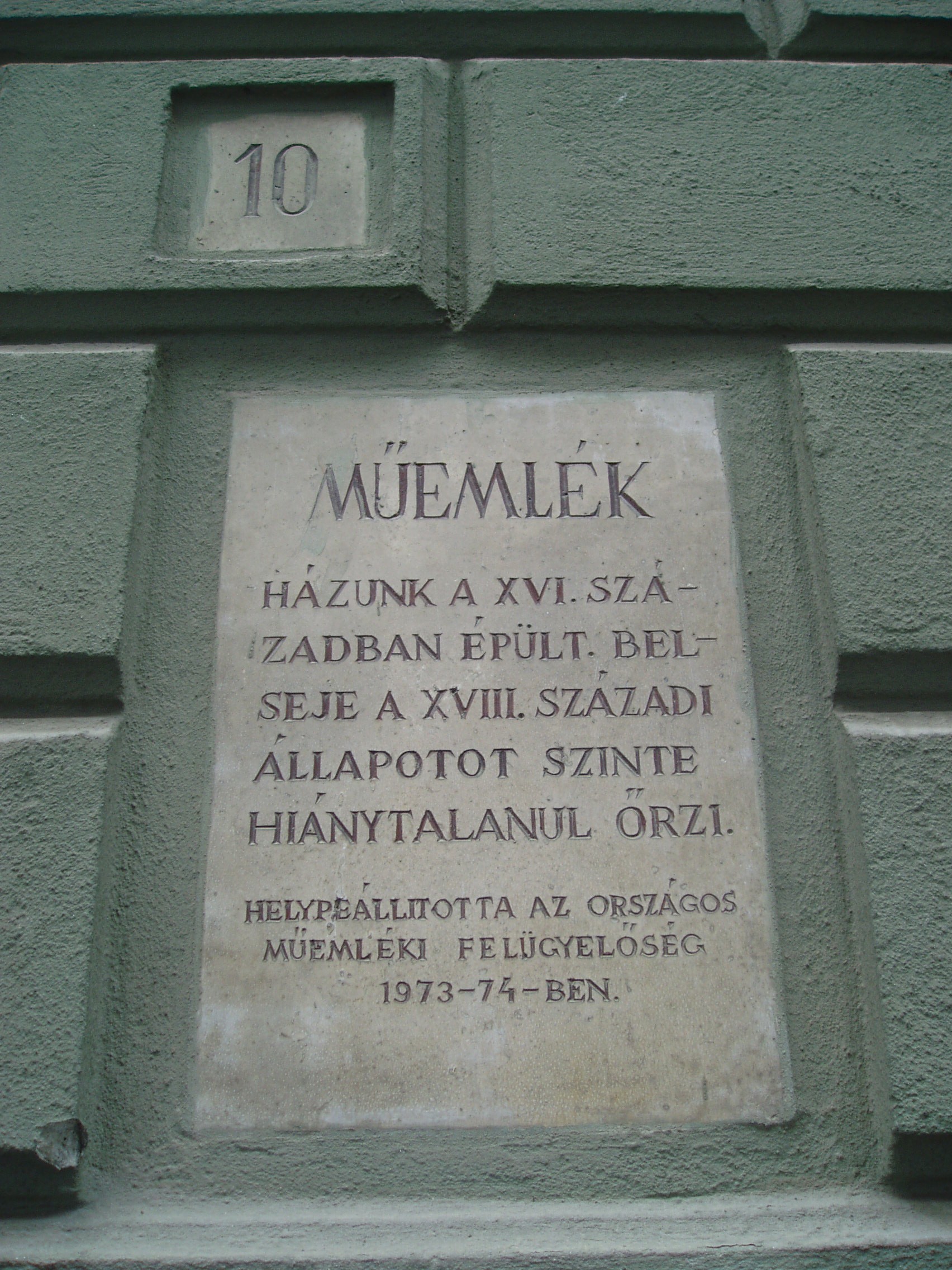 Nyilvános 1118 | 1486 | Sopron, Szent György utca 10. | Az egyemeletes barokk lakóház a XVI. században épült. A XIX. század második felében erősen átalakított homlokzata a XVIII. századból származik. Az épület belseje csaknem hiánytalanul őrzi XVIII. századi állapotát. Emeleti, boltozott utcai szobáiban virágdíszes festés látható. A kép 2008 júniusában készült. Felh. irod.: Czellár Katalin: Sopron. 3. jav. kiad. Bp. Panoráma, 2000 |
