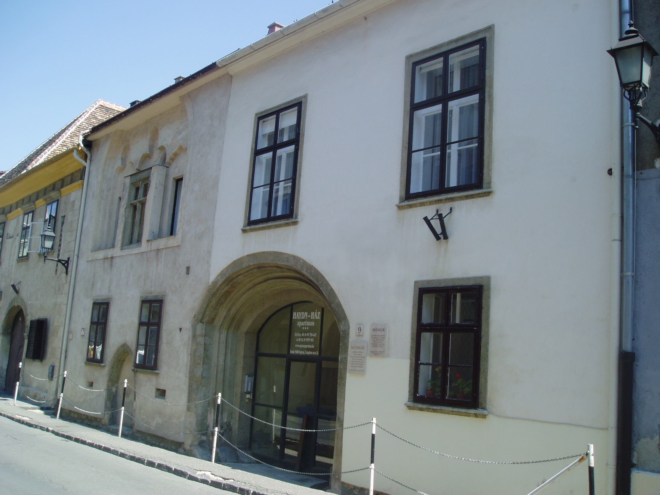 Nyilvános 1094 | 1532 | Sopron, Templom utca 9. | Az egyemeletes lakóház eredetileg a XIV. században épült, díszes kapuja a XVIII. században készült. A későbbiekben többször átalakított épület 1734 és 1782 között több magyar nemesi család birtokában volt, később Bezzegh János soproni tanácsos vásárolta meg. A kép 2008 júniusában készült. Felh. irod.: Czellár Katalin: Sopron. 3. jav. kiad. Bp. Panoráma, 2000 |