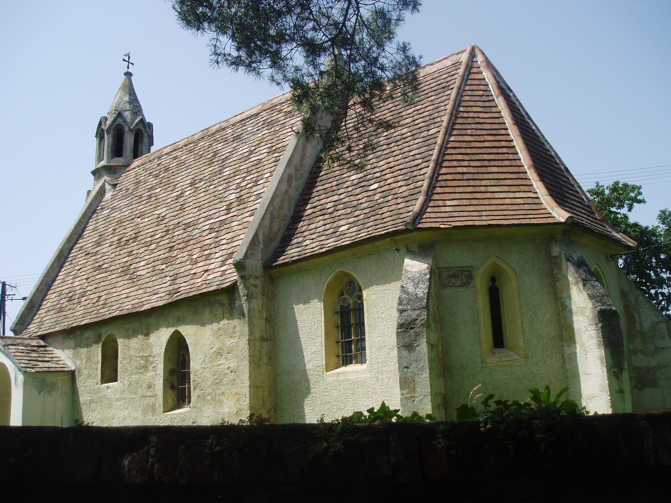 Nyilvános 1104 | 3183 | Sopronbánfalva: Bánfalvi út: Mária Magdolna-templom | A kis templom a falu egyik legértékesebb műemléke. 1291 előtt épült. Gótikus tornya a XIV. század elejéről származik, ugyancsak gótikus szentélye pedig a XV. századból. A kép 2008 júniusában készült. Felh. irod.: Czellár Katalin: Sopron. 3. jav. kiad. Bp. Panoráma, 2000 |