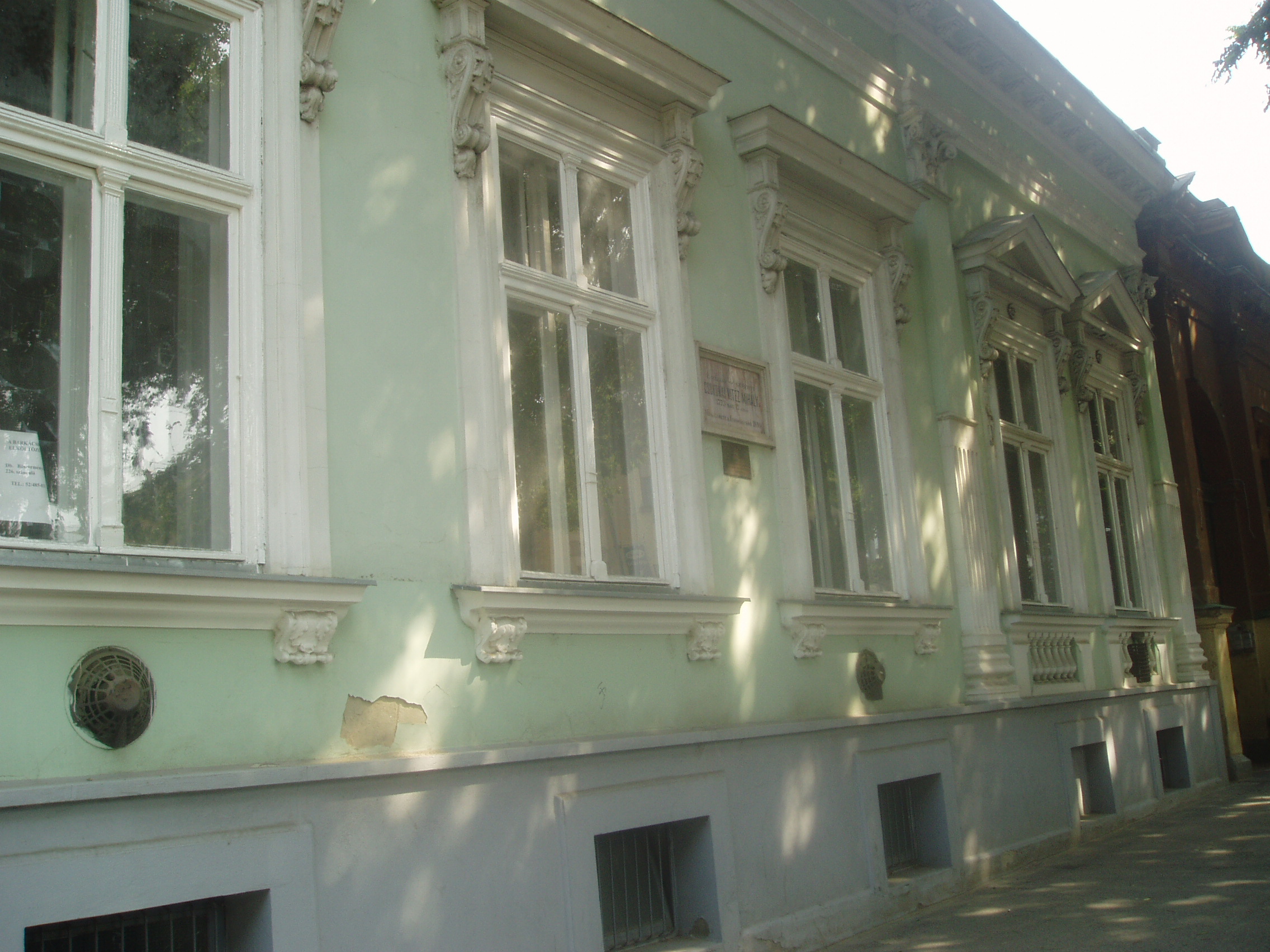 Nyilvános 1201 | 1816 | Debrecen, Hatvan utca 23. | Az ezen a helyen korábban állott épületben született 1773. november 17-én Csokonai Vitéz Mihály. A jelenlegi eklektikus épületet 1890 körül emelték. Ebben működött a város első múzeuma 1905-1928 között. A Csokonai eredeti szülőházát jelölő emléktábla ma az utódépületen látható. A fénykép 2006 júniusában készült. Felh. irod.: Papp Antal: Debrecen. Bp. Panoráma, 1976 Kovács Gergelyné: Debrecen. Bp. Panoráma, 1981 |