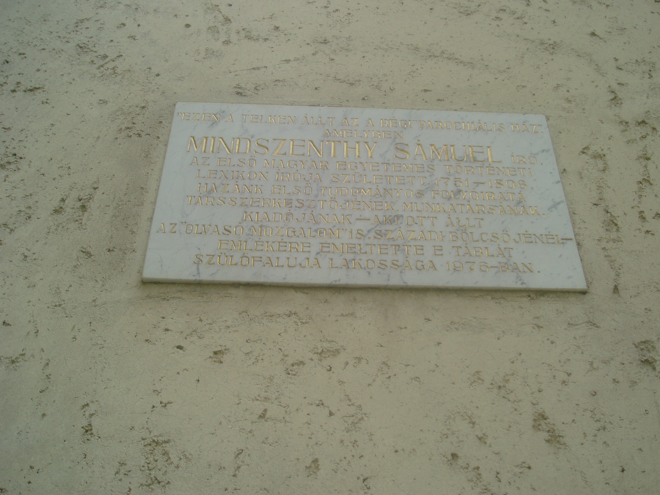 Nyilvános 1268 | 1965 | Püspökladány, Kálvin tér | A mostani református parókia helyén állott régi parókiaépületben született 1751-ben Mindszenthy Sámuel református egyház- és művelődéstörténeti író. Debreceni, majd svájci tanulmányok után Komáromban működött, ott is hunyt el 1806-ban. Fontos közreműködője volt az első magyar tudományos, ismeretterjesztő folyóirat, a Mindenes Gyűjtemény megjelenésének. Felh. irod.: Magyar életrajzi lexikon |