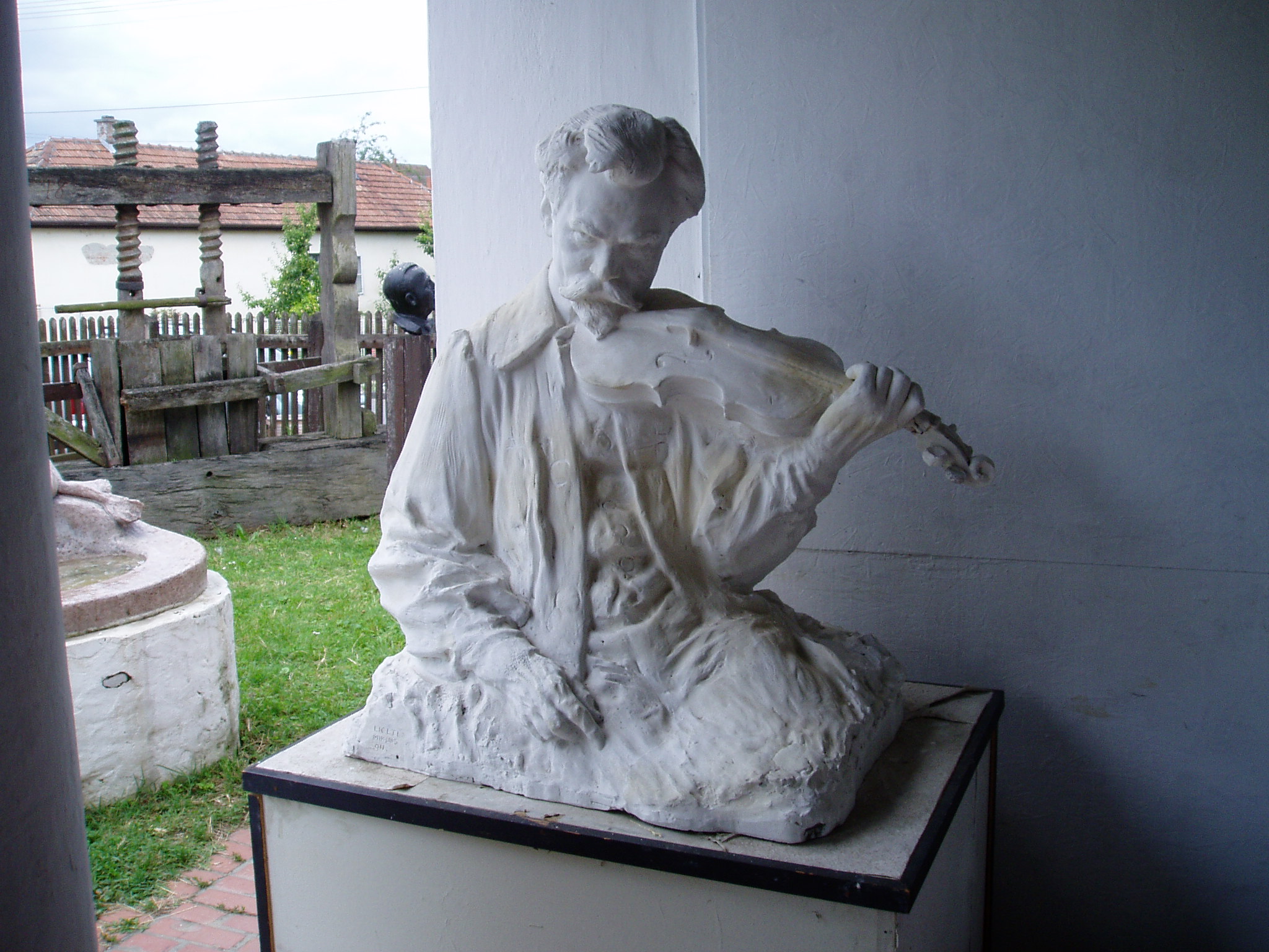 Nyilvános 1686 | 4543 | Balatonlelle, Kossuth utca 35. Kapoli Múzeum | Az 1700-as évek végén épült, szépen rendbe hozott parasztház ad otthont a Kapoli Múzeumnak. A földszinten két állandó kiállítást, a tetőtérben neves kortárs művészek időszaki kiállítását tekintheti meg a közönség. Láthatók idősebb és ifjabb Kapoli Antal somogyi pásztor-faragómesterek, kiváló népművészek munkái és Ligeti Miklós szobrászművész - többek között az Anonymus és Déryné szobrok alkotójának, Rodin tanítványának - művei. A képen: Ligeti Miklós Hubay Jenő hegedűművészről és zeneszerzőről készített portrészobra. A fénykép 2005 júliusában készült. Felh. irod.: Ligeti Gábor: Balatonlelle. Lellei séták. Bp. Tájak, Korok, Múzeumok Kiskönyvtára 559. 1998 |