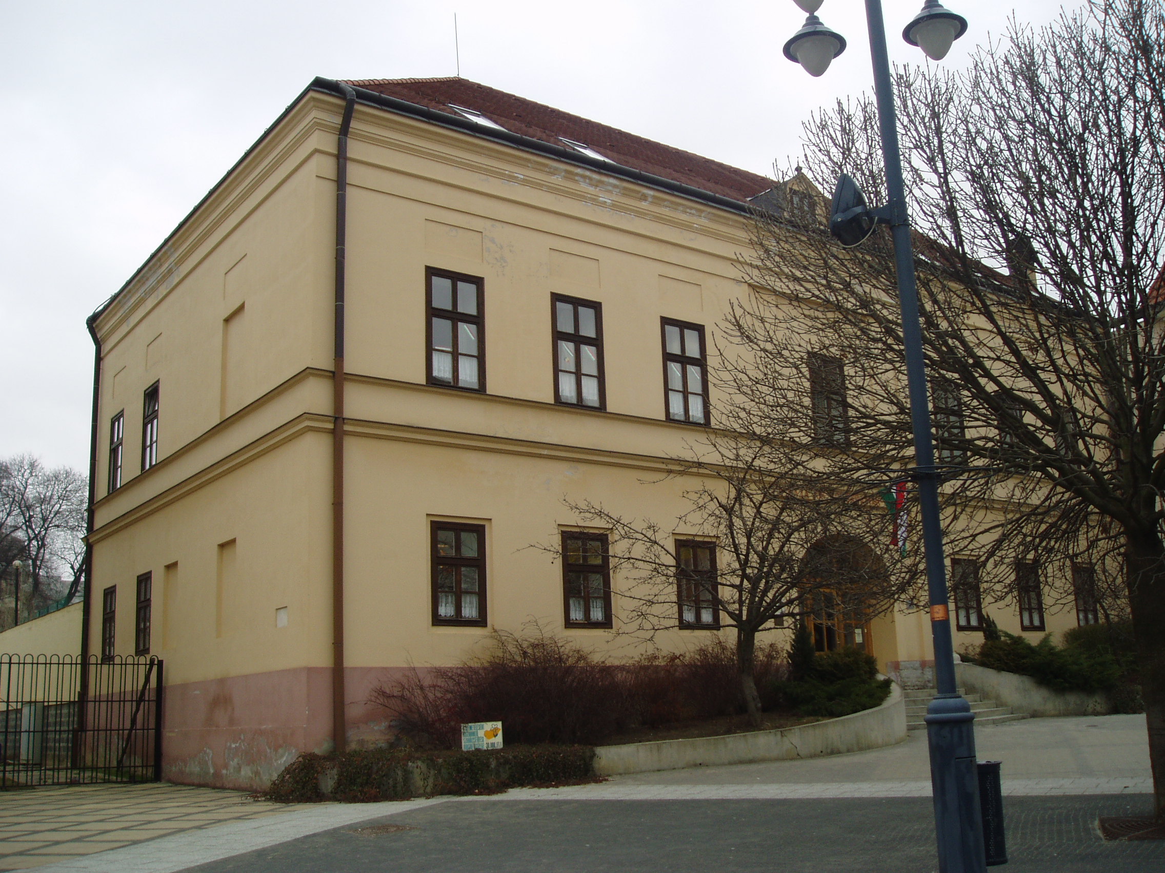 Nyilvános 1127 | 1745 | Kaposvár, Kossuth tér 2. | A volt nemzeti iskola épületének kapuja felett felirat tudósít építésének időpontjáról: "A haza kis polgárainak 1832". Az iskolát az 1880-as években eklektikus stílusban átalakították, de mindig oktatási intézményeknek adott otthont. A fénykép 2006 márciusában készült. Felh. irod.: Látnivalók Somogy megyében. Miskolc, Well-PRess, 2000 /Vendégváró/ www.kaposvar.hu |