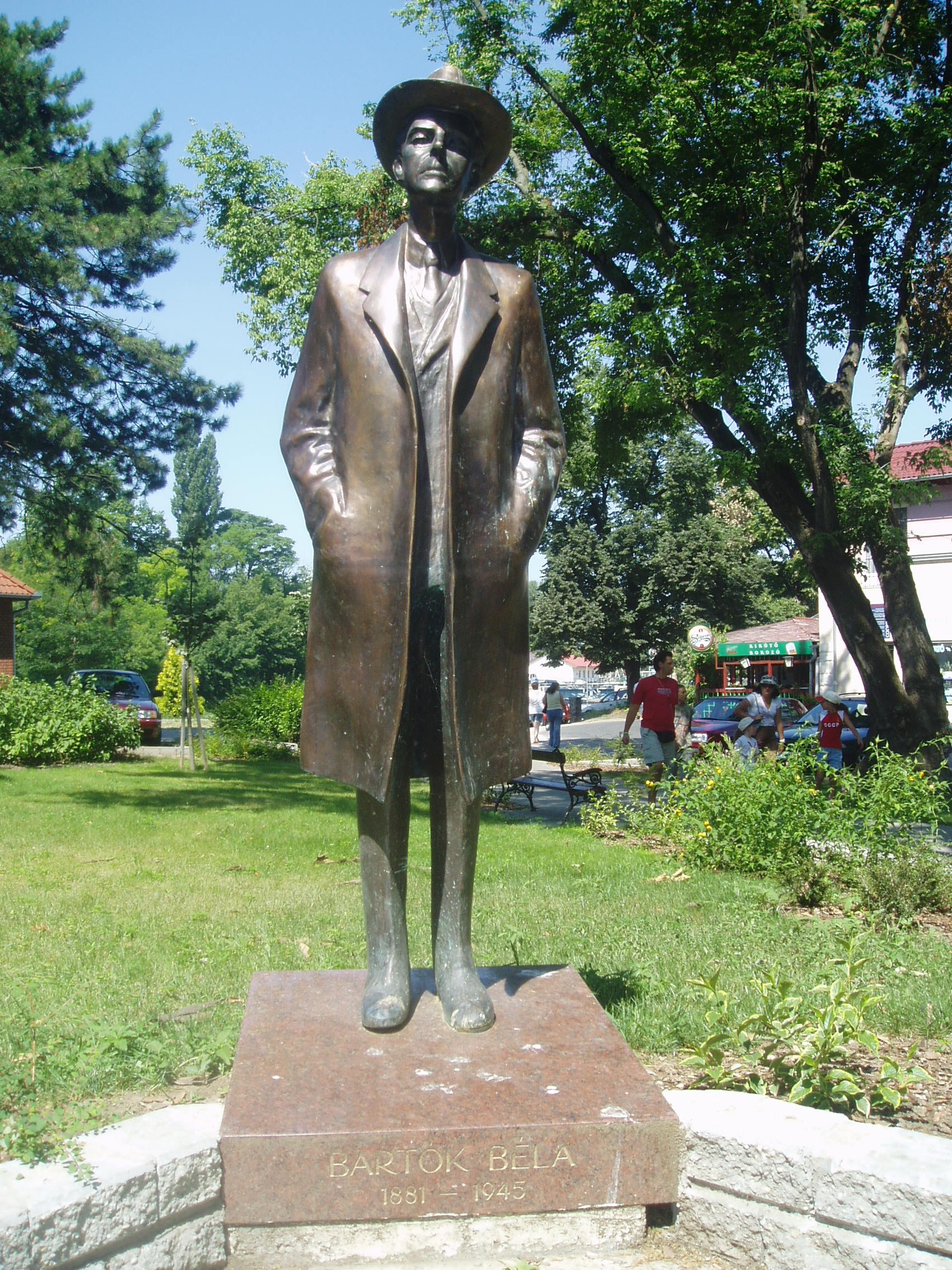 Nyilvános 1221 | 1918 | Siófok, Mártirok útja 5. | A Siófoki Művészeti Iskola (azelőtt Zeneiskola) épülete közelében, a Szent Miklós parkban áll Varga Imre siófoki születésű szobrászművész egészalakos Bartók Béla szobra. A fénykép 2006 júliusában készült. |