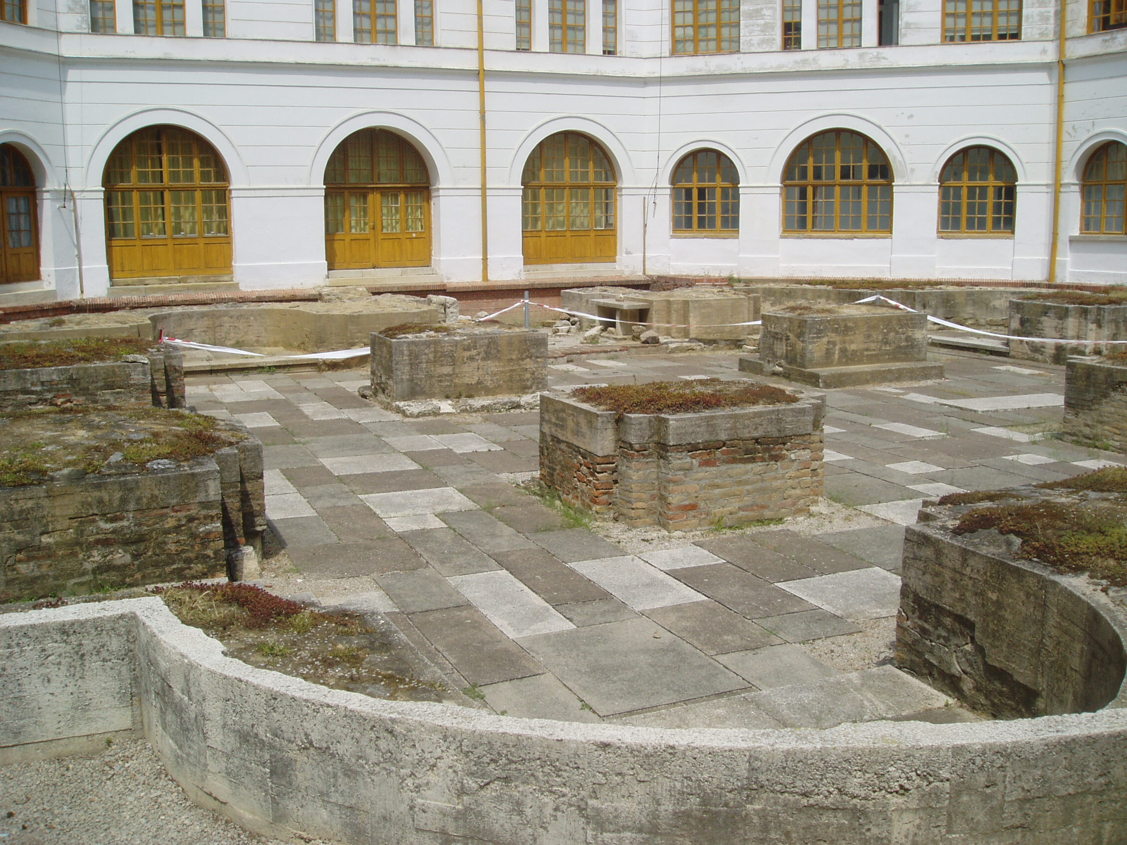 Nyilvános 1595 | 3527 | Szekszárd, Béla tér 1. Megyeháza | Az 1799-ben megyeszékhellyé vált Szekszárd közigazgatási központját 1828–1833 között építették Pollack Mihály tervei szerint klaszicista stílusban, az 1780-ban eredetileg uradalmi épületként emelt régi megyeháza felhasználásával. Ezen a területen a középkorban bencés apátsági épületek állottak; az egykori kolostor néhány évtizeddel ezelőtt feltárt alapfalai megtekinthetők a Megyeháza udvarán. Egyes források szerint itt temették el 1063-ban az apátságot alapító I. Béla királyt, 1526. augusztus 11-én pedig — Mohács felé tartva — e régi kolostorban szállt meg II. Lajos király. A fénykép 2006 júliusában készült. Felh. irod.: Töttös Gábor: Szekszárd. Bp. Panoráma, 1986 www.csatolna.hu Zádor Anna: Pollack Mihály. Bp. Akadémiai Kiadó, 1961 |