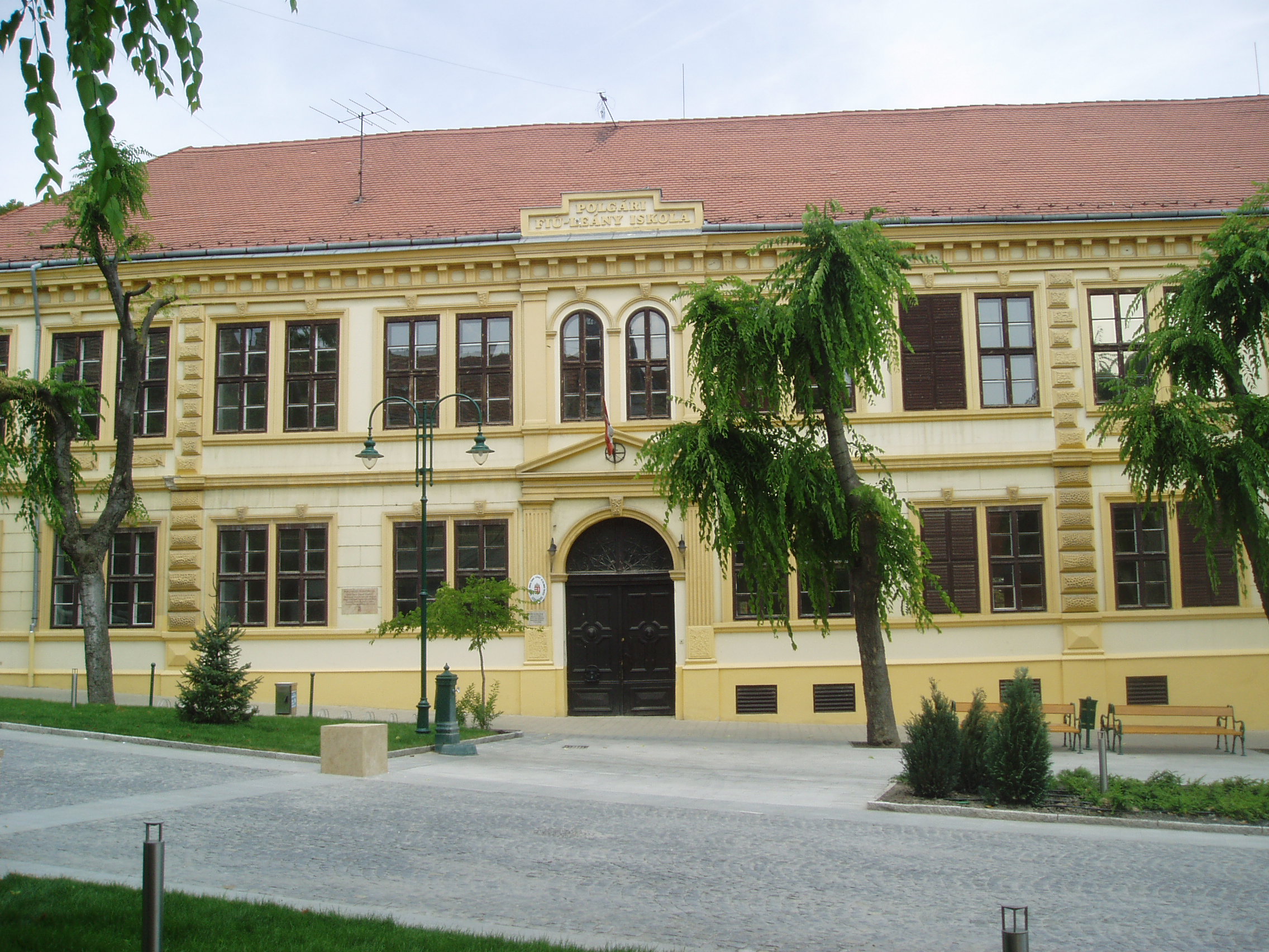 Nyilvános 1259 | 2198 | Szekszárd, Garay tér 9. | Az egykori polgári fiú- és leányiskola 1876-ban épült koraeklektikus stílusban Stann Jakab tervei szerint. Mint a homlokzatán elhelyezett emléktáblán is olvasható, több neves diák tanult itt, többek között Dienes Valéria filozófus, az orkesztika megalapítója (lásd még: Szekszárd, Babits M. u. 17.), Szakály Ferenc történész és Baka István író. A fénykép 2006 júliusában készült. Felh. irod.: http://www.szeki.hu/turista/kalauz/magyar/tu000063.htm |