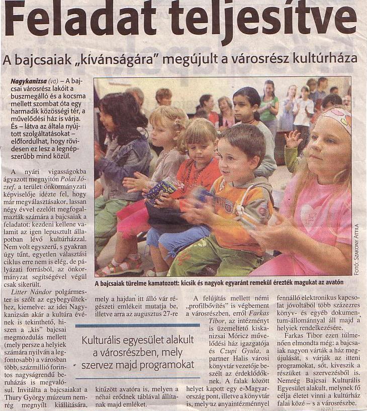 Bajcsa - Újságcikkek