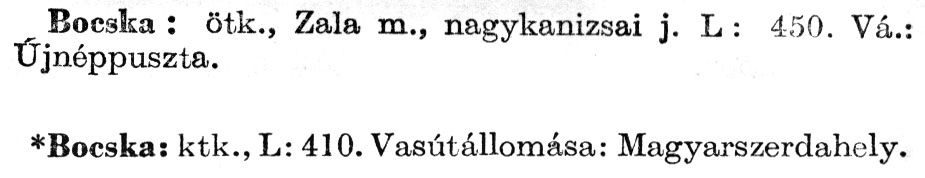 Nyilvános 2399 | 6020 | Rövid leírás | Teljes leírás (986 B) | A szócikkek felismertetett szövege: (A csillag után az 1972-es kiadású kiegészítő kötetből származó szöveg következik) Bocska: ötk., Zala m., nagykanizsai j. L : 450. Vá.: Újnéppuszta. *Bocska: ktk., L: 410. Vasútállomása: Magyarszerdahely. A szócikkek a következő lexikonból származnak: Cím: Új magyar lexikon Közreműködő: Berei Andor (1900-1979) (szerk.) Szerz. közl.: [szerk. Berei Andor et al.] Kiadás jelzés: 2. lny. Kiadás: Budapest : Akad. K., 1961-1962 Kötetei: 1., A - C 2., D - F 3., G - J 4., K - Me 5., Mf - R 6., S - Z 7. köt., A-Z Kiegészítő kötet (1972) Kiegészítő kötet, 1962÷1980 (1981) ETO jelzet: 03=945.11 Szakjelzet: 030 Cutter: U 28 Nyelv: magyar Megjegyzés: Bibliogr. a címszavak egy részének végén |