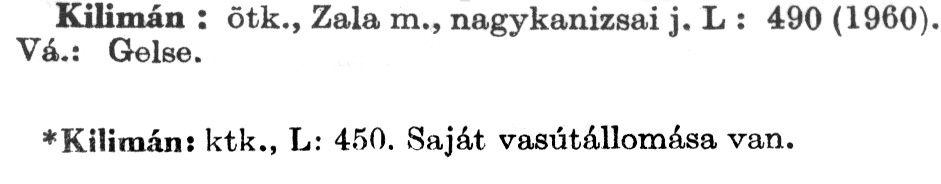 Nyilvános 2299 | 5946 | A szócikkek felismertetett szövege: | (A csillag után az 1972-es kiadású kiegészítő kötetből származó szöveg következik) Kilimán: ötk., Zala m., nagykanizsai j. L : 490 (1960). Vá.: Gelse. *Kilimán: ktk., L: 450. Saját vasútállomása van. A szócikkek a következő lexikonból származnak: Cím: Új magyar lexikon Közreműködő: Berei Andor (1900-1979) (szerk.) Szerz. közl.: [szerk. Berei Andor et al.] Kiadás jelzés: 2. lny. Kiadás: Budapest : Akad. K., 1961-1962 Kötetei: 1., A - C 2., D - F 3., G - J 4., K - Me 5., Mf - R 6., S - Z 7. köt., A-Z Kiegészítő kötet (1972) Kiegészítő kötet, 1962÷1980 (1981) ETO jelzet: 03=945.11 Szakjelzet: 030 Cutter: U 28 Nyelv: magyar Megjegyzés: Bibliogr. a címszavak egy részének végén |