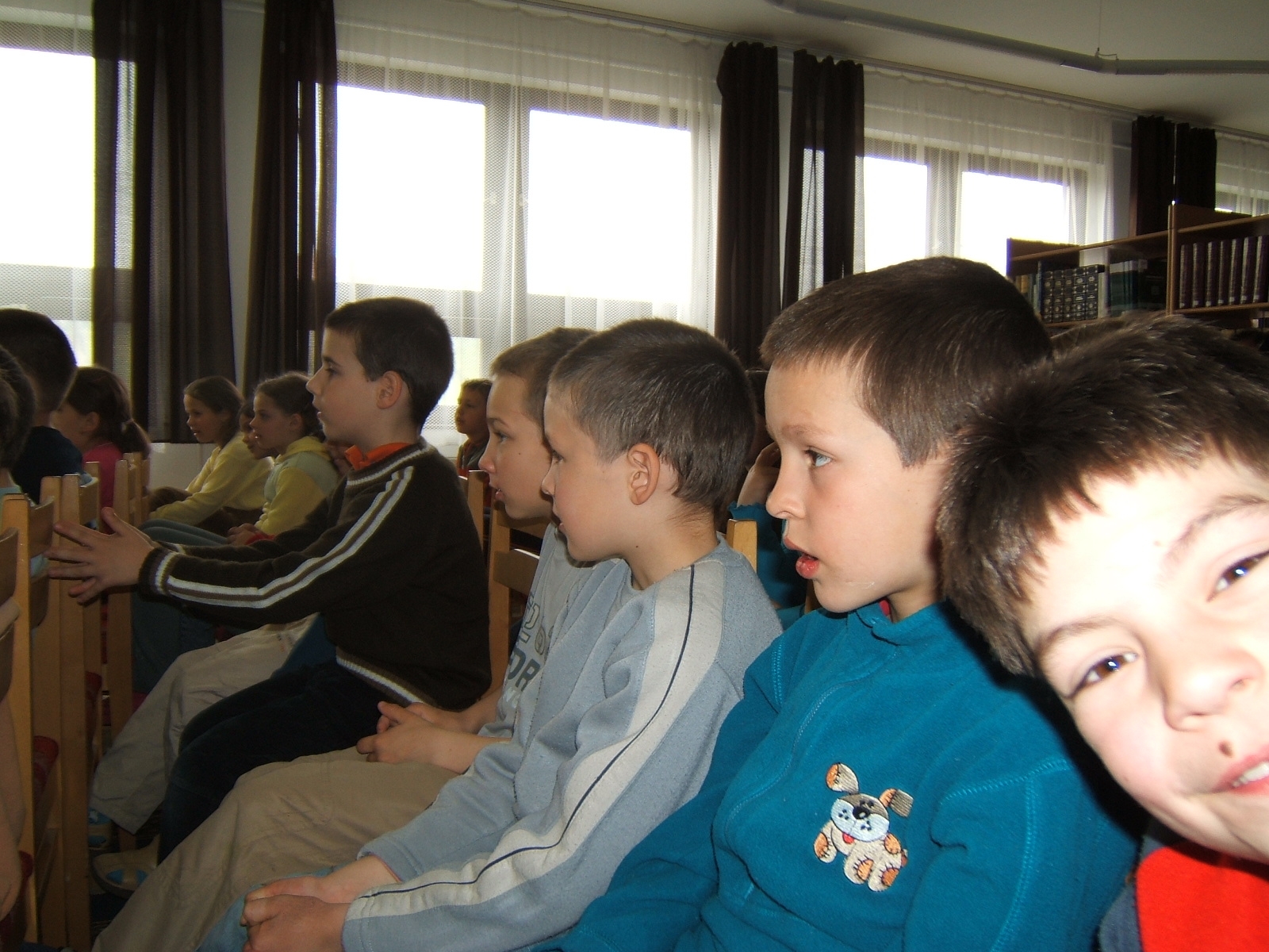 Nyilvános 1598 | 3543 | Költészet napja műsor a zalakarosi könyvtárban 2006. április 11-én. Vendégünk volt a Kardos Banda együttes, aki a kisiskolásoknak és a nagyoknak külön összeálított \"Költészet - minden formában régiektől, maiaktól\" című műsorát adta elő. | |