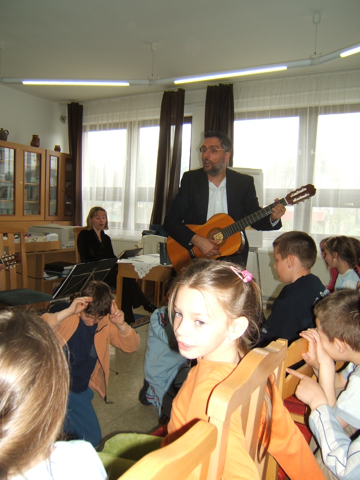 Nyilvános 1583 | 3608 | Költészet napja műsor a zalakarosi könyvtárban 2006. április 11-én. Vendégünk volt a Kardos Banda együttes, aki a kisiskolásoknak és a nagyoknak külön összeálított \"Költészet - minden formában régiektől, maiaktól\" című műsorát adta elő. | |