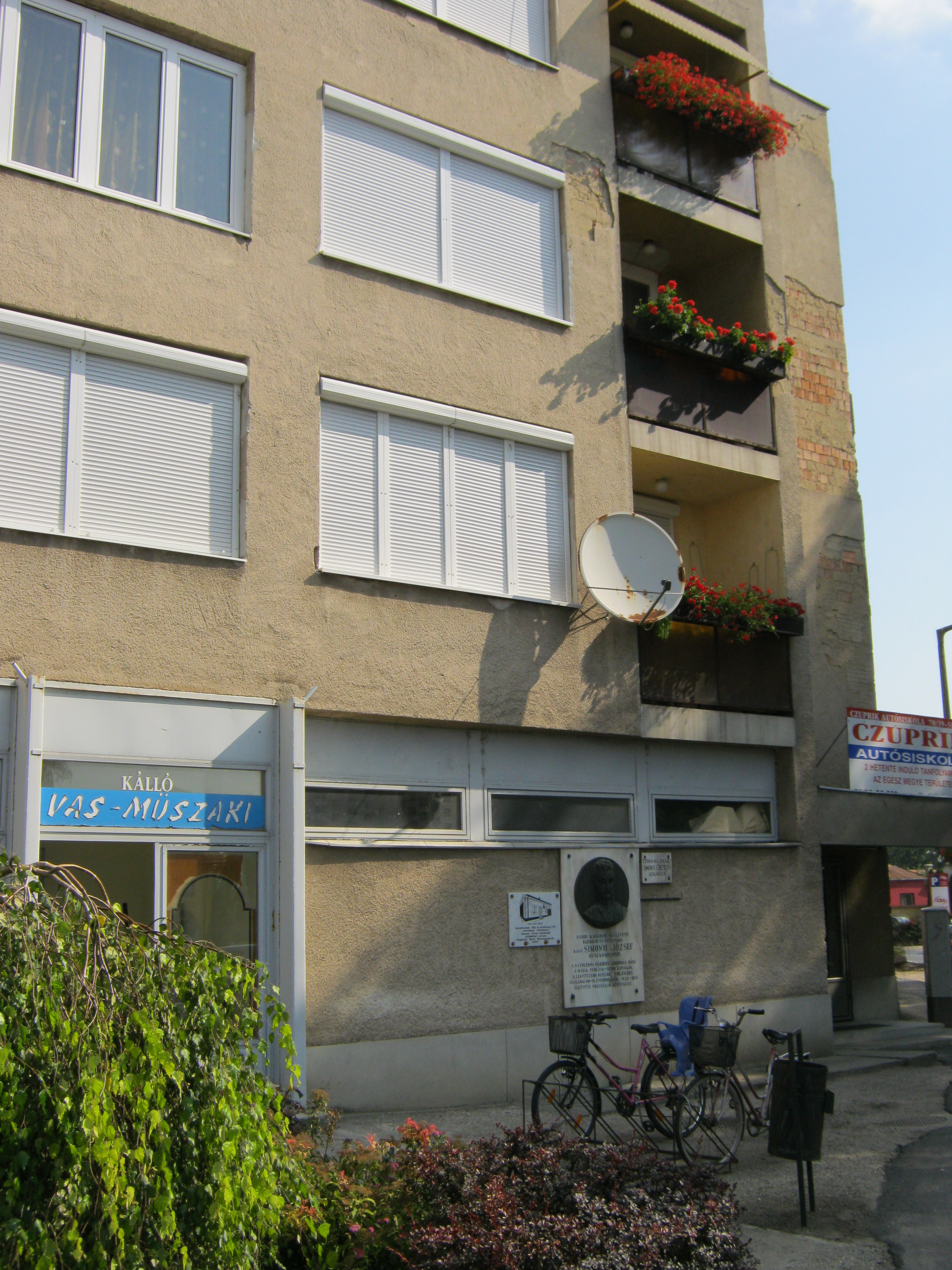 Nyilvános 1339 | 2812 | Rövid leírás | Teljes leírás (575 B) | Nagykálló, Bátori út 2. Egykor ezen a helyen állott a legendás Simonyi óbester szülőháza. Barbácsi és vitézvári báró Simonyi József (1771. március 18. – 1832. augusztus 23.), legendás hírű huszártiszt volt, kortársai "a legvitézebb huszár" kitüntető címmel illették. A panelházon szerencsére legalább látható az eredeti épületen 1932-ben elhelyezett emléktábla, egy új márványtáblán pedig megörökítették a szülőház képét. A fénykép 2010 augusztus elején készült. |