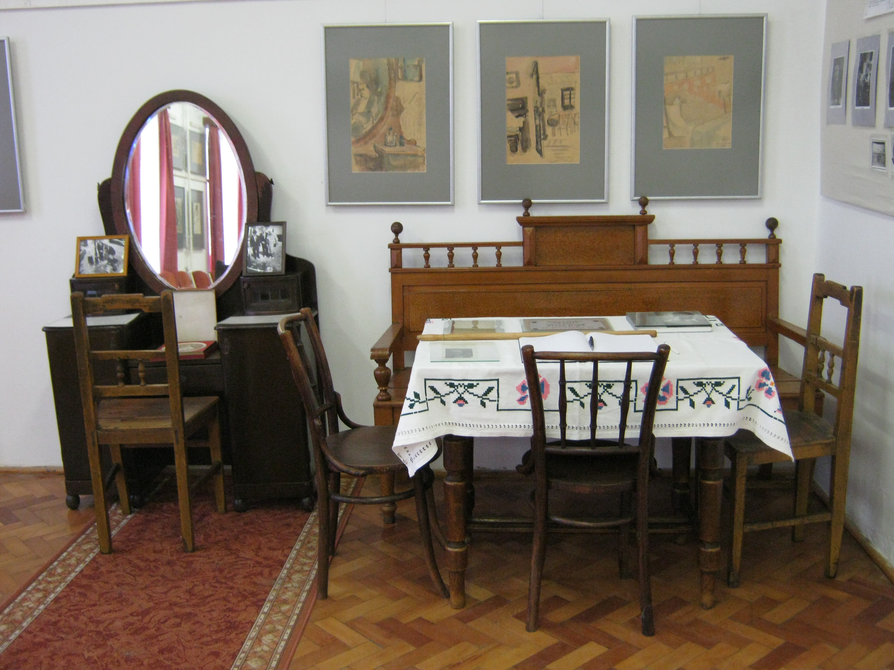 Nyilvános 1110 | 1506 | Nagykálló, Szabadság tér 5-8. | Az általános iskola épületében tekinthető meg az Ámos Imre Képtár. A tragikus sorsú festőművész Nagykállón született "a piac melletti Zsidó utcában" 1907. december 7-én Ungár Imre néven. Elemi és középiskolába is itt járt. 1944 nyarán a németországi Ohrdruf lágerébe hurcolták, halálának napja nem ismert. Harsányi Gézáné helytörténész így jellemzi: "Egyszerre volt tehetséges festő, mindhalálig verselgető, irodalmi értékű naplót vezető és a zene szépségeire megrezdülő, hegedűn kiválóan játszó művészlélek". Itt látható képeit felesége, Anna Margit ajándékozta Nagykállónak. Felh. irod.: Harsányi Gézáné: Kálló kincsei. Nagykálló, 2007 A fénykép 2010 augusztus elején készült. |