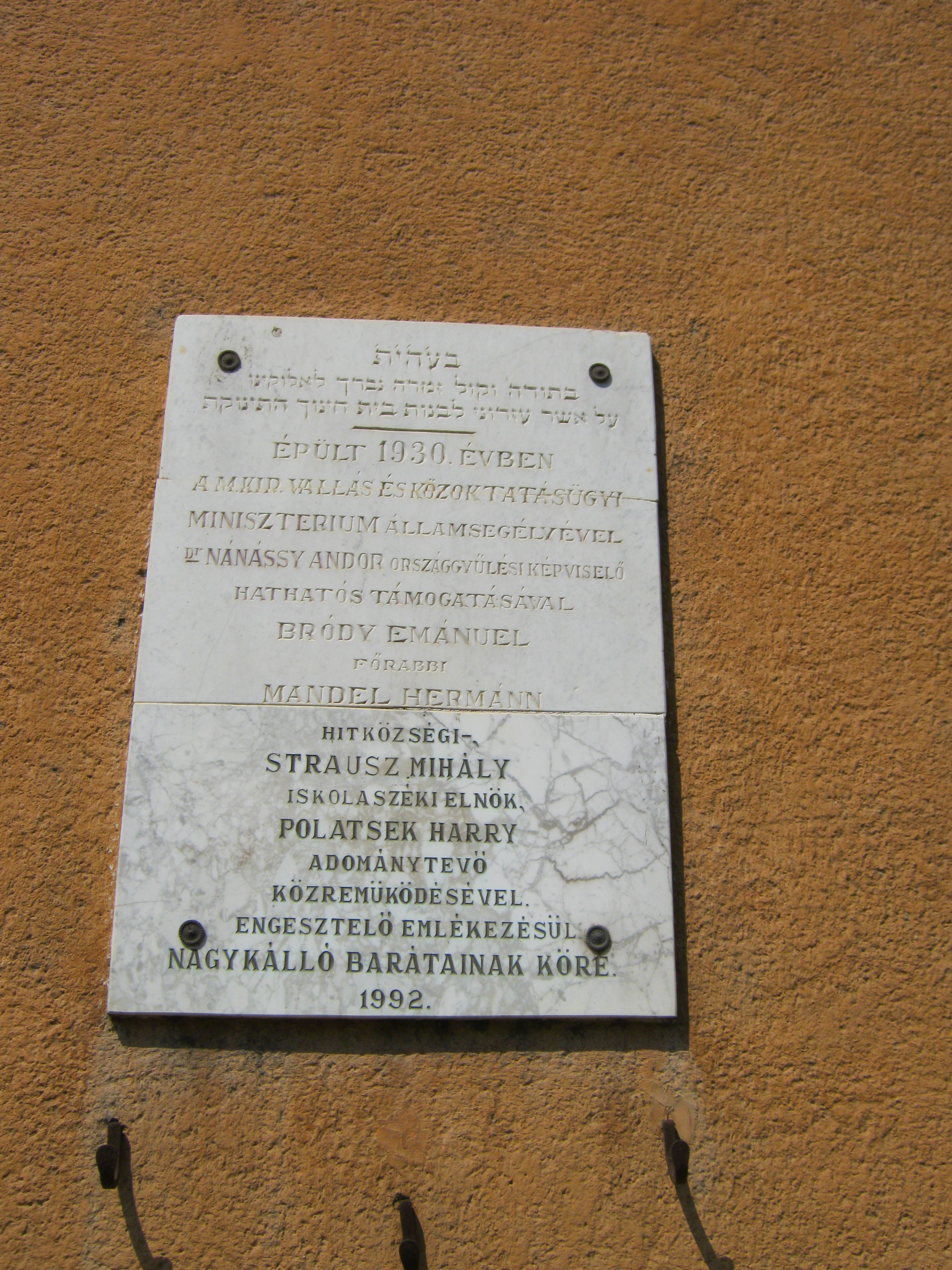 Nyilvános 1128 | 1506 | Nagykálló, Nagybalkányi út 7. | Az egykori Izraelita iskola 1930-ban közadakozásból épült. Létesítéséhez anyagilag jelentősen hozzájárult Pollatsek Harry Amerikába vándorolt kállói ügyvéd. 1944-ben itt alakították ki a gettót, innen hurcolták el a kállói zsidóság nagy részét. Felh. irod.: Harsányi Gézáné: Kálló kincsei. Nagykálló, 2007 A fénykép 2010 augusztus elején készült. |