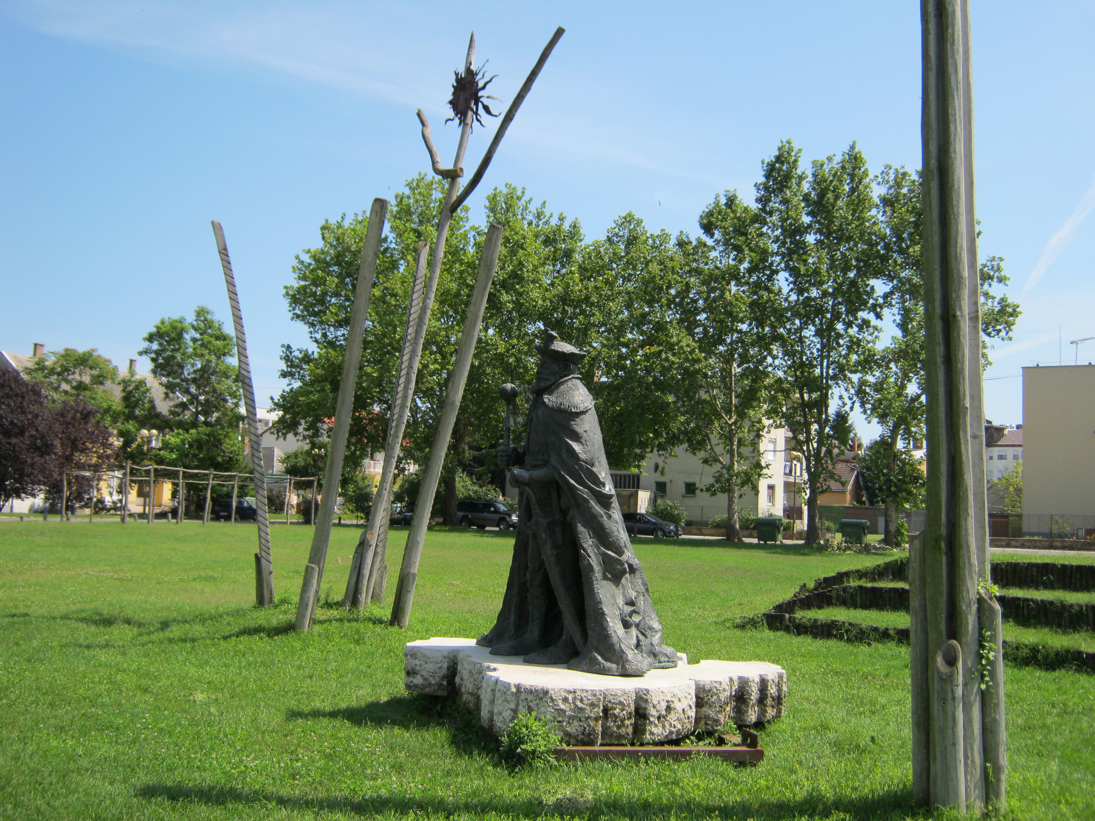 Nyilvános 1123 | 1641 | Nyírbátor: Bethlen Gábor emlékműve | A minorita templom közelében található tó partján áll Bethlen Gábor (1580-1629) erdélyi fejedelem, választott magyar király emlékműve. Bárhogyan is keresgéltem, semminemű információt nem találtam se alkotójáról, se magáról a szoborról. A fénykép 2010 augusztus elején készült. |