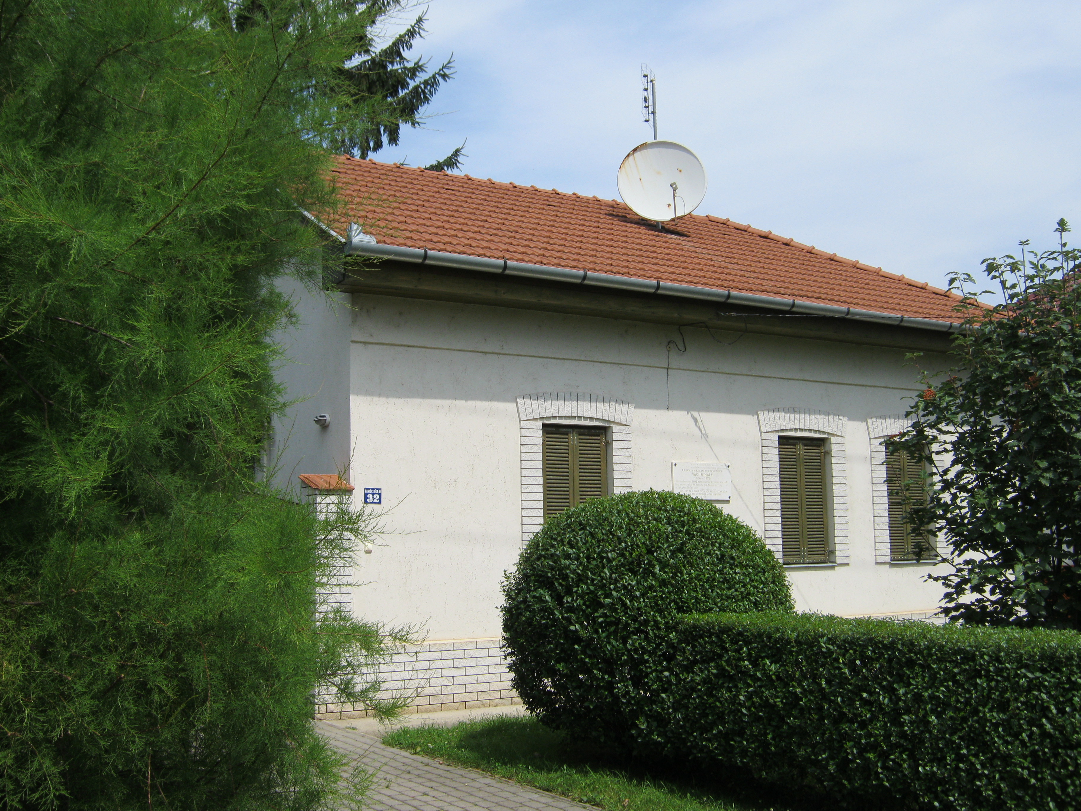 Nyilvános 1114 | 1466 | Nyíregyháza, Bartók Béla utca 32. | Mielőtt a Debrecen felé vezető műút átszelné a vasútvonalat, Nyíregyháza központjától távol, a Bartók Béla utcában ma is álló családi házon emléktáblát találunk: "Ebben a házban nevelkedett Váci Mihály". A Szeder utca 59. alatt egykor álló zsúptetős cselédházban született (oda sajnos nem jutottam el, a mai épületet ott is emléktábla jelöli). Életrajzírója, Kovács Sándor Iván így jellemzi gyermekkori környezetét: "Nincs még egy költőnk Illyés Gyula óta, akinek indulását oly meghatározó erővel befolyásolná szülőföld és családi környezet, mint Váci Mihályét. Szülőföldjéről egyszerre hozta magával a nyírségi tájak és a szociális nyomorúság élményét; a tébécé halálos fenyegetésén kívül egyedül ezt jussolta 'névtelen kis cseléd' őseitől, s költészetének és prózájának mindvégig éltető közege ez a kettős inspiráció." A költő 15 éves koráig lakott egy szobában csont-tuberkulózisban szenvedő nagyanyjával. Hat testvére közül csak egy maradt életben. Ebből a közegből származva végezte el a tanítóképzőt (lásd: Nyíregyháza, Széchenyi u. 6.), majd pályáját tanyasi tanítóként kezdte. Váci Mihály nyíregyházi emlékhelyeiről kiváló összefoglalás található itt (2010. 08. 29.): www.vacimihalykor.hu/siremlekek/nyiregyhaza.htm Felh. irod.: Kovács Sándor Iván: Váci Mihály. Bp. Akadémiai Kiadó, 1972 A fénykép 2010 augusztus elején készült. |