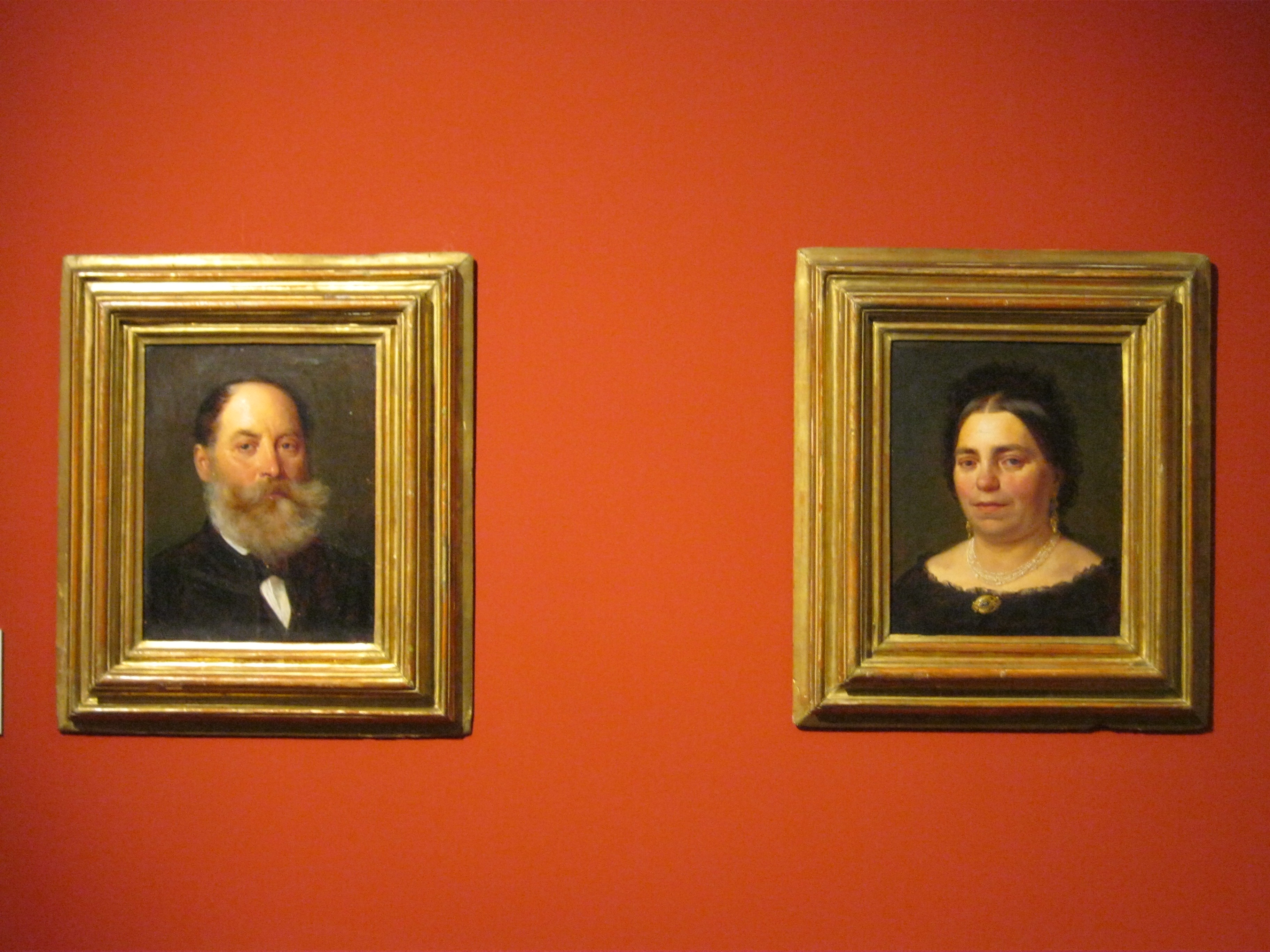 Nyilvános 1136 | 1642 | Nyíregyháza, Benczúr tér 21. Jósa András Múzeum | Magyarország egyik legrégibb múzeumát Dr. Jósa András alapította 1868-ban, akinek ma nevét viseli. A képen Benczúr Gyula emlékszobájának részlete. A nagy magyar festőművész 1844-ben Nyíregyházán született (lásd: Nyíregyháza, Kossuth tér 8.), apja gyógyszerész volt. A képen látható festményeken a művész szüleit örökítette meg. Felh. irod.: Látnivalók Szabolcs-Szatmár-Bereg megyében. Miskolc, Well-PRess, 1999 http://jam.nyirbone.hu A fénykép 2010 augusztus elején készült. |