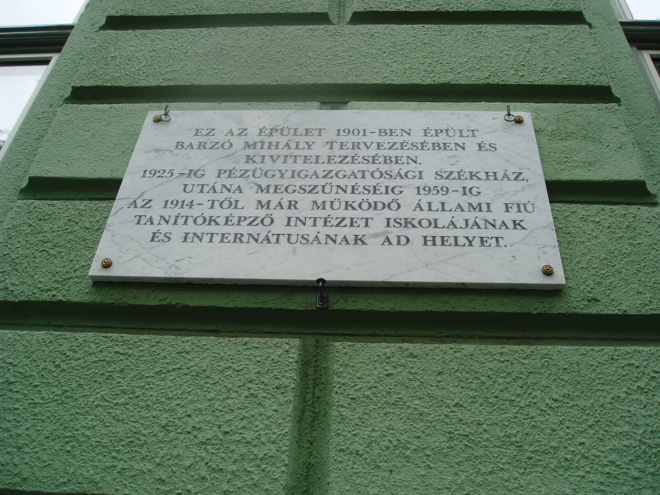 Nyilvános 1105 | 1428 | Nyíregyháza, Széchenyi utca 6. Kölcsey Ferenc Gimnázium | Épületét 1901-ben, Barzó Mihály tervei alapján, pénzügyigazgatósági székháznak emelték. 1925-től, 1957-ben történt megszűnéséig középfokú tanítóképző intézetként működött. Azóta a Kölcsey gimnázium otthona. Az első gimnáziumi osztály 1954/55-ben még egy korábbi épületben kezdte meg a tanulást, de már itt érettségizett 1959-ben. Az iskolaépület homlokzatán több emléktábla idézi az egykori tanítóképző, majd gimnázium neves tanárainak és diákjainak alakját. Felh. irod.: www.kolcsey-nyh.sulinet.hu A fénykép 2010 augusztus elején készült |