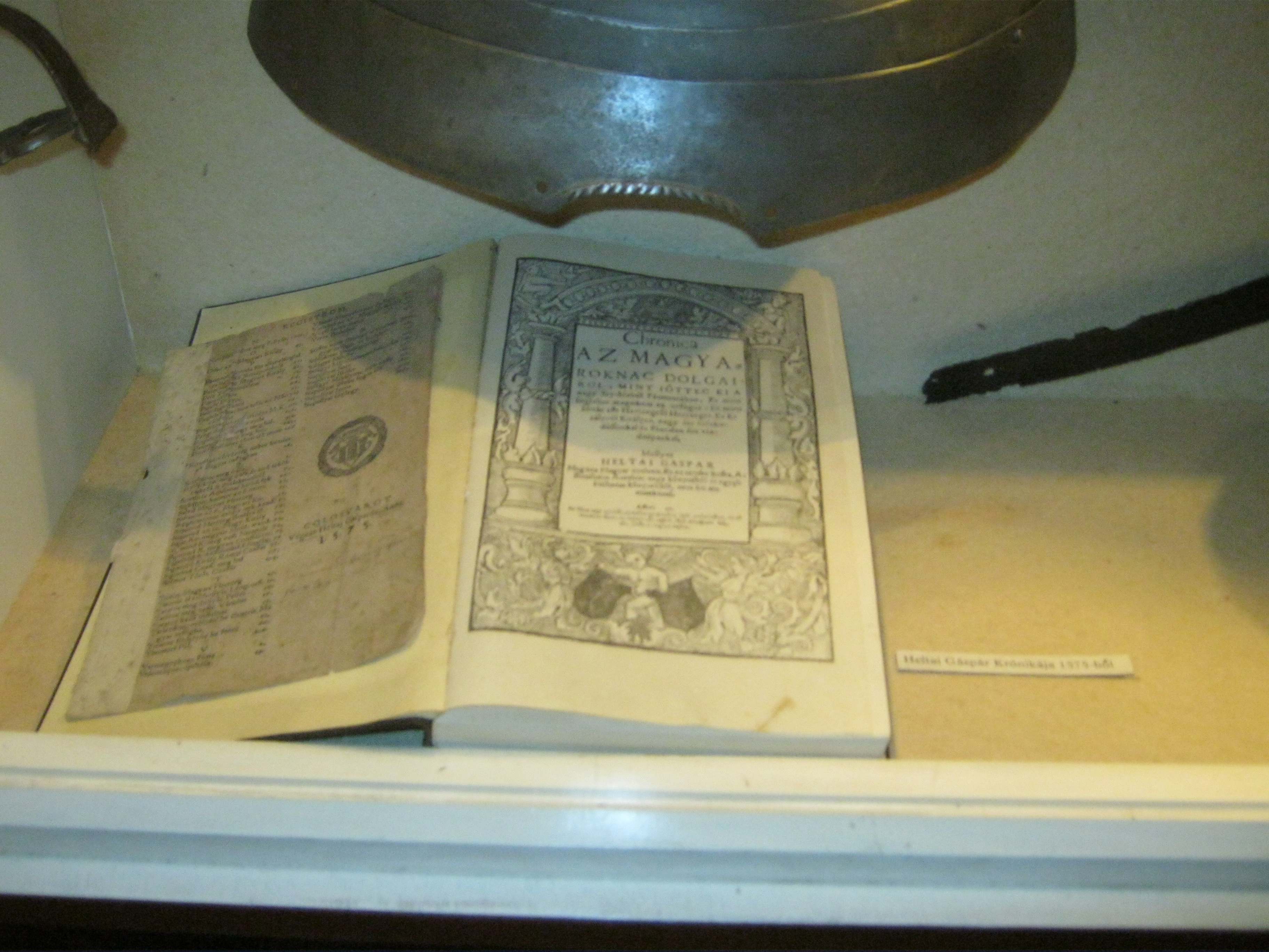 Nyilvános 1103 | 1442 | Nyírbátor, Károlyi utca 21. Báthori István Múzeum | A minorita kolostor épültét 1959-ben kapta meg a múzeum. Első igazgatója, Szalontai Barnabás áldozatos munkája nyomán két év múlva már meg is nyílhatott benne az első kiállítás. A képen Heltai Gáspár (1490 k.-1574) híres könyve, a Krónika a magyaroknak dolgairól. Felh. irod.: Látnivalók Szabolcs-Szatmár-Bereg megyében. Miskolc, Well-PRess, 1999 www.nyirbim.hu |