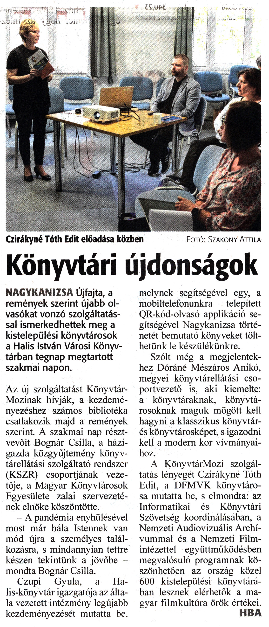 Nyilvános 1311 | 1674 | Zalai Hírlap 2022. április 22. 92. szám 3. oldal | Könyvtári újdonságok NAGYKANIZSA Újfajta, a remények szerint újabb olvasókat vonzó szolgáltatással ismerkedhettek meg a kistelepülési könyvtárosok a Halis István Városi Könyvtárban tegnap megtartott szakmai napon. Az új szolgáltatást Könyvtár-Mozinak hívják, a kezdeményezéshez számos bibliotéka csatlakozik majd a remények szerint. A szakmai nap résztvevőit Bognár Csilla, a házigazda közgyűjtemény könyvtárellátási szolgáltató rendszer (KSZR) csoportjának vezetője, a Magyar Könyvtárosok Egyesülete zalai szervezetének elnöke köszöntötte. - A pandémia enyhülésével most már hála Istennek van mód újra a személyes találkozásra, s mindannyian tettre készen tekintünk a jövőbe -mondta Bognár Csilla. Czupi Gyula, a Halis-könyvtár igazgatója az általa vezetett intézmény legújabb kezdeményezését mutatta be, melynek segítségével egy, a mobiltelefonunkra telepített QR-kód-olvasó applikáció segítségével Nagykanizsa történetét bemutató könyveket tölthetünk le készülékünkre. Szólt még a megjelentekhez Dóráné Mészáros Anikó, megyei könyvtárellátási csoportvezető is, aki kiemelte: a könyvtáraknak, könyvtárosoknak maguk mögött kell hagyni a klasszikus könyvtár- és könyvtárosképet, s igazodni kell a modern kor vívmányaihoz. A KönyvtárMozi szolgáltatás lényegét Czirákyné Tóth Edit, a DFMVK könyvtárosa mutatta be, s elmondta: az Informatikai és Könyvtári Szövetség koordinálásában, a Nemzeti Audiovizuális Archívummal és a Nemzeti Filmintézettel együttműködésben megvalósuló programnak köszönhetően az ország közel 600 kistelepülési könyvtárában lesznek elérhetők a magyar filmkultúra örök értékei. HBA Czirákyné Tóth Edit előadása közben Fotó: Szakony Attila |
