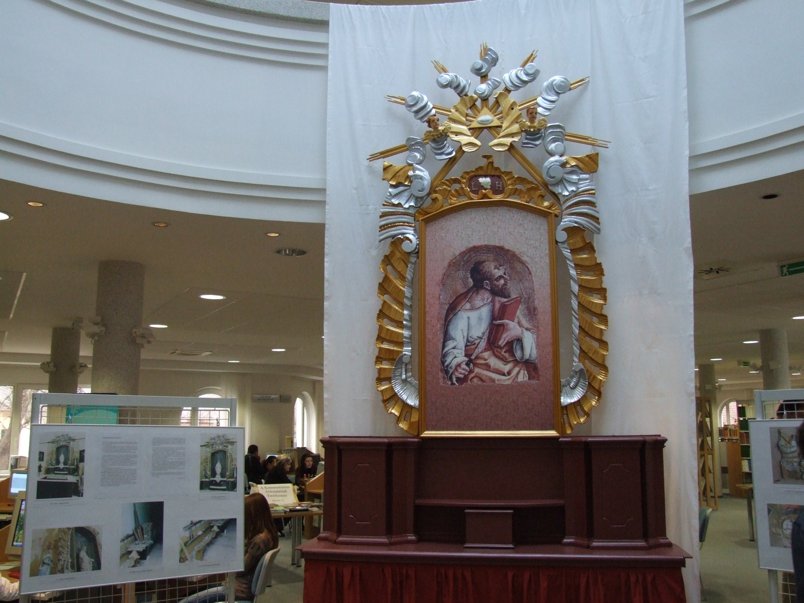 A Tarnóczky Attila által felújított oltár könyvtári környezetben.JPG
