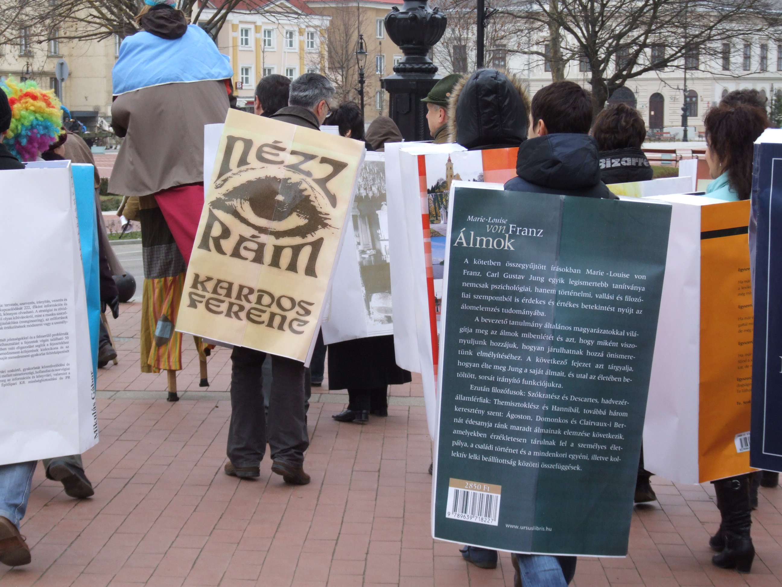 Nyilvános 1138 | 1593 | 2013. február 9. A farsangi fánkfesztiválra készülve felhívásban kértük olvasóinkat, hogy öltsék magukra kedves könyvüket. Egy „könyvespolcnyi” jelentkező vette magára kedves olvasmányát, az ő vonulásukról készültek ezek a képek. A környezetükben néhol láthatók a Nagykanizsai Gólyalábasok, akik szintén a könyvtárhoz kötődnek. A „felvonuló kötetek” a könyvtár épületében még megtekinthetők. | |