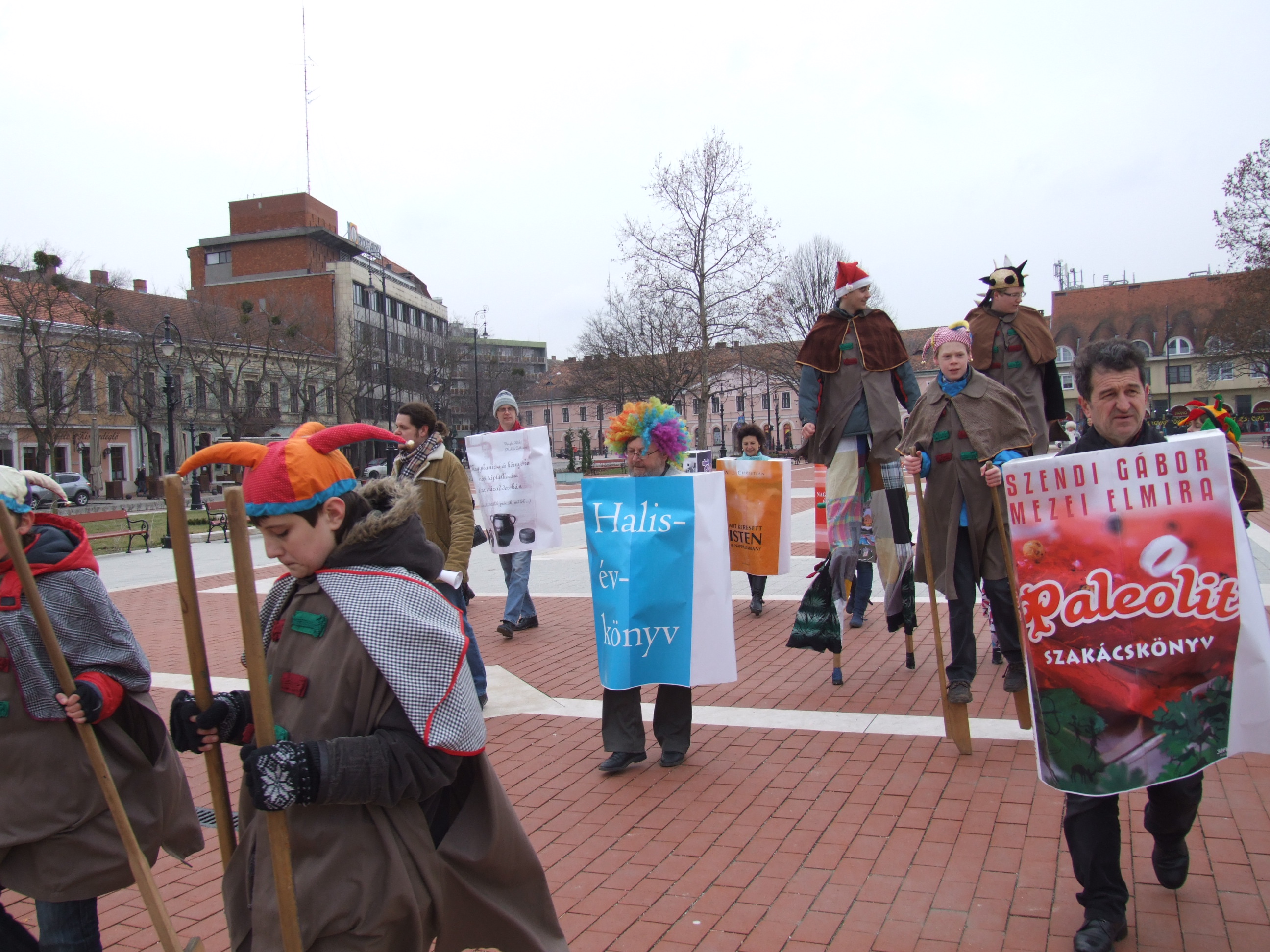 Nyilvános 1132 | 1490 | 2013. február 9. A farsangi fánkfesztiválra készülve felhívásban kértük olvasóinkat, hogy öltsék magukra kedves könyvüket. Egy „könyvespolcnyi” jelentkező vette magára kedves olvasmányát, az ő vonulásukról készültek ezek a képek. A környezetükben néhol láthatók a Nagykanizsai Gólyalábasok, akik szintén a könyvtárhoz kötődnek. A „felvonuló kötetek” a könyvtár épületében még megtekinthetők. | |